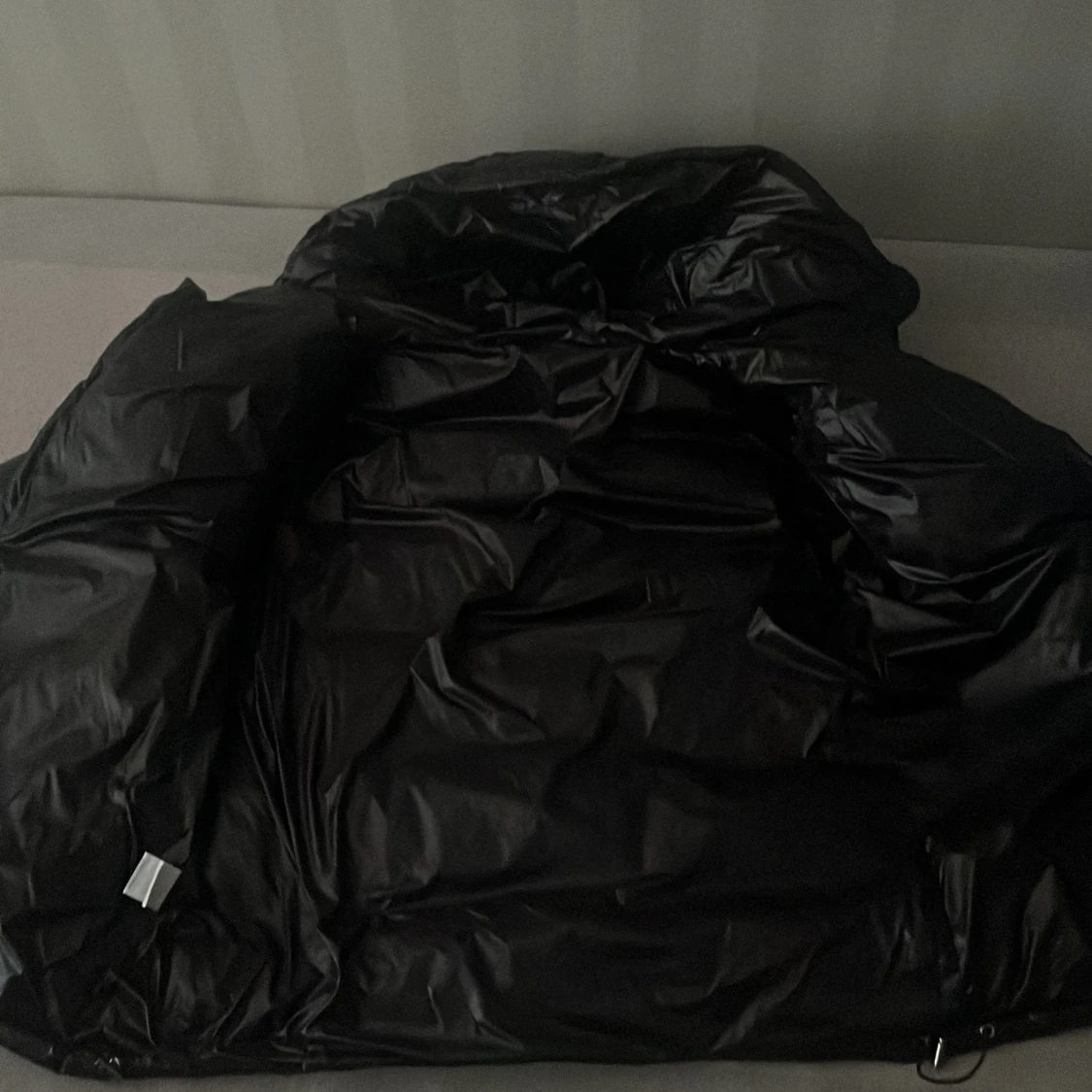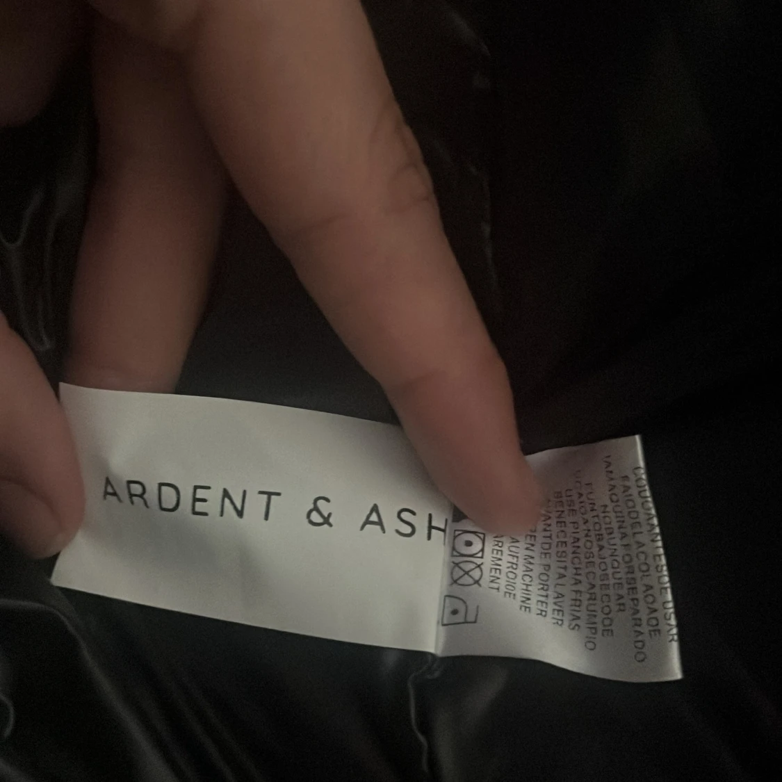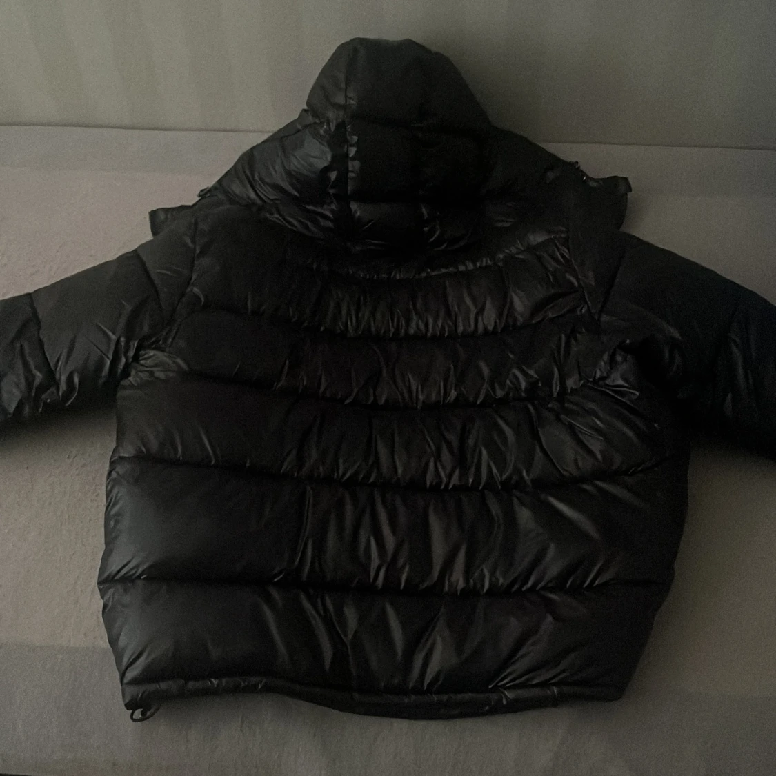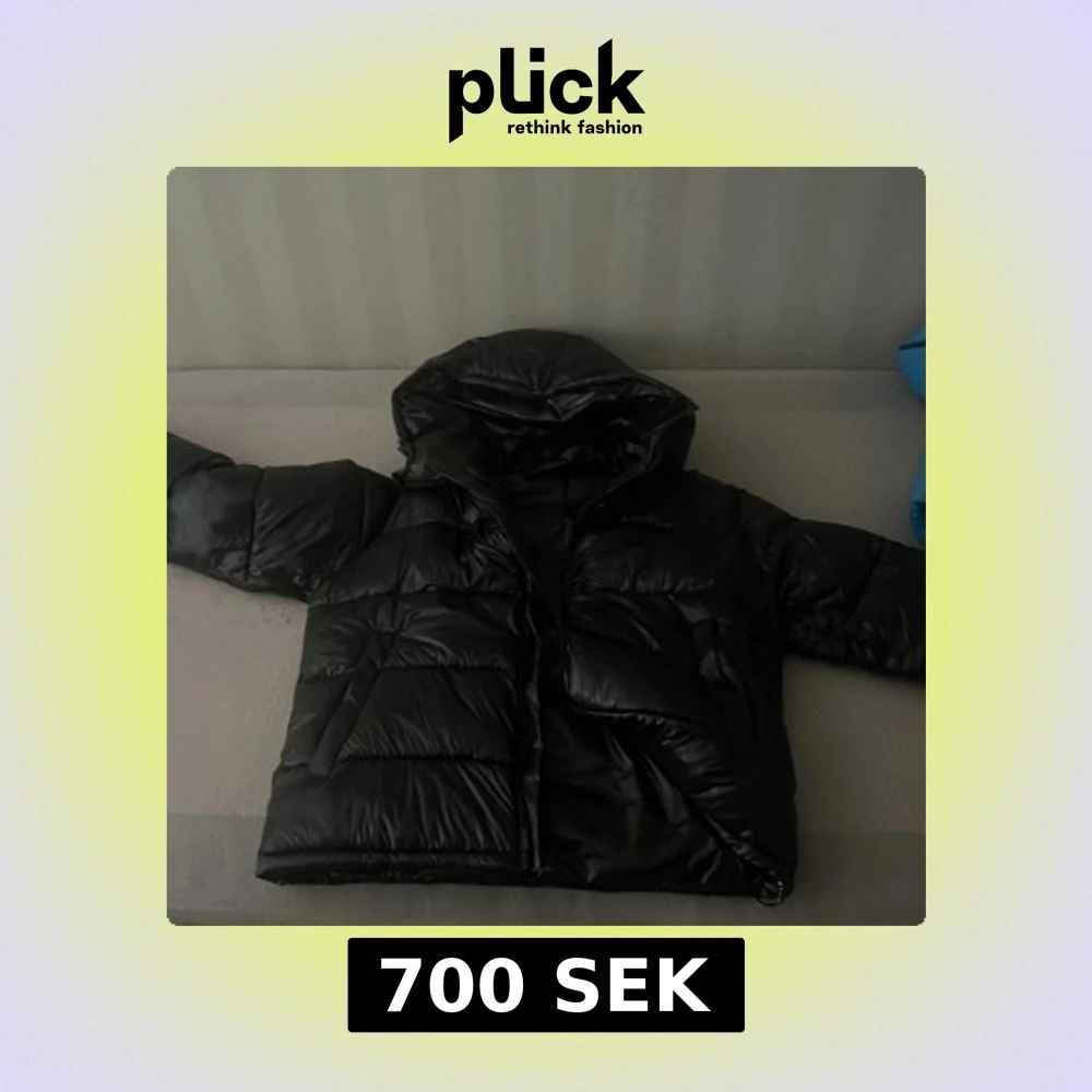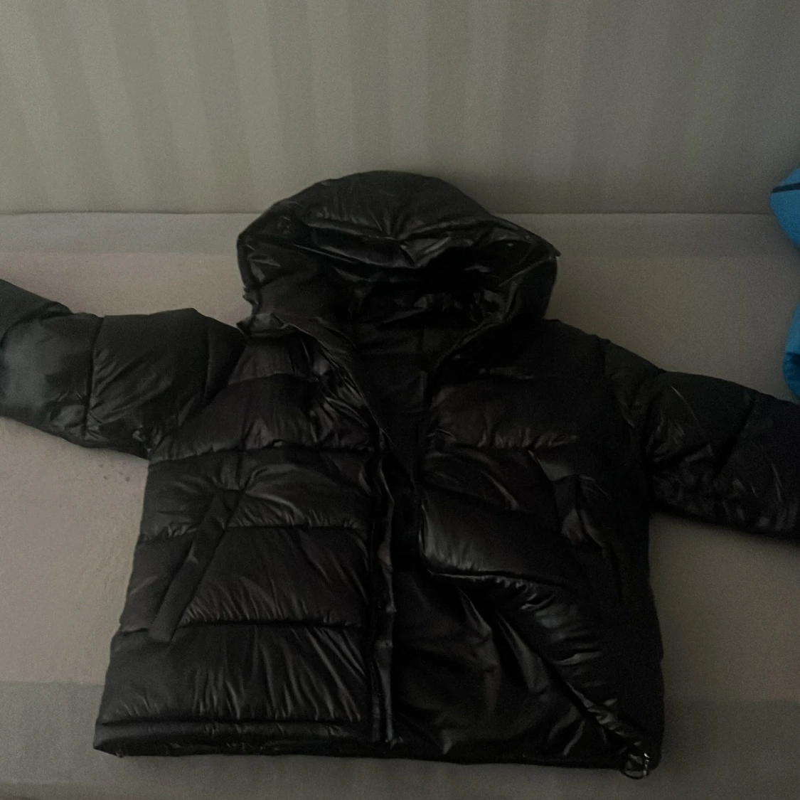 Säljer en svart pufferjacka från Ardent & Ash med glansig finish och huva. Jackan är vadderad och har långa ärmar samt dragkedja framtill. Perfekt för kalla dagar när du vill hålla stilen och värmen.
