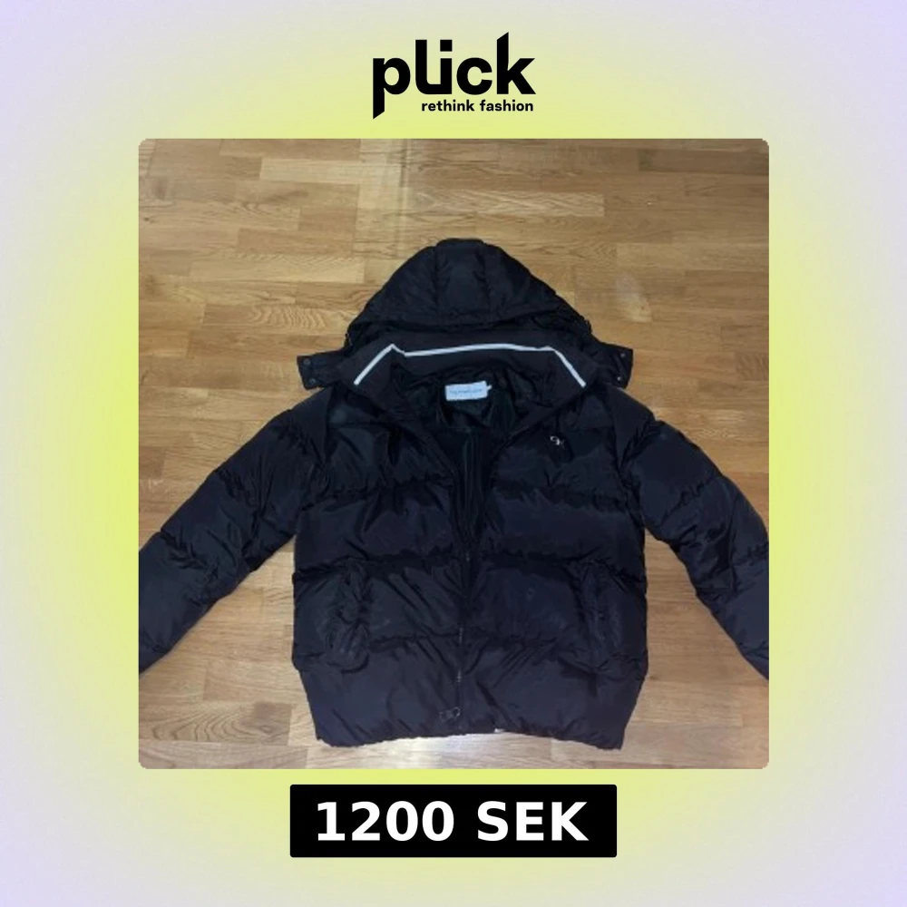 Säljer en svart pufferjacka från Calvin Klein med huva och dragkedja. Jackan har en normal passform och är perfekt för kyligare dagar. Klassisk design med diskret logga på bröstet och två sidofickor.