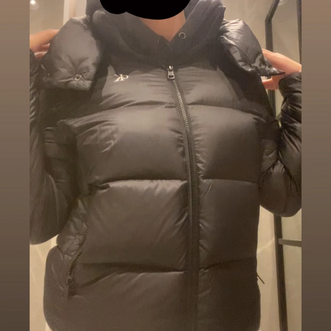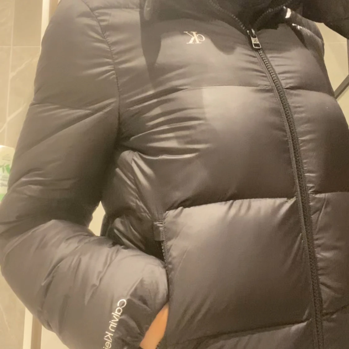 Säljer en svart pufferjacka från calvin klein med huva och dragkedja framtill. Jackan är quiltad och har en clean, sportig look med diskret logga på bröstet. Perfekt för kalla dagar och riktigt snygg till streetwear-stil. Calvin klein puffer jacka i storlek S men passar mig som bär Xs också. Använd max 2 ggr. Den är väldigt tjock och varm, samt är även vattentät!