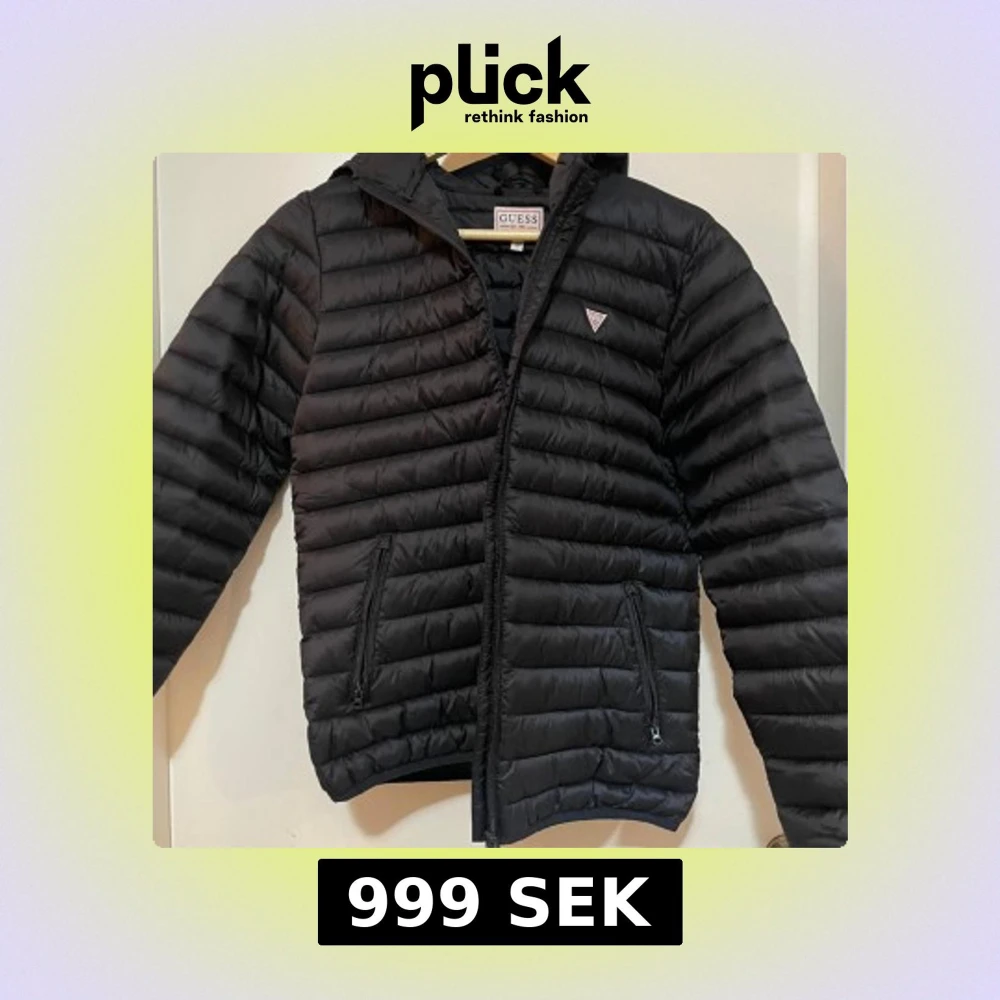 Snygg svart pufferjacka från Guess med dragkedja och huva. Jackan har en quiltad design och två praktiska fickor med dragkedja framtill. Perfekt för kyligare dagar.