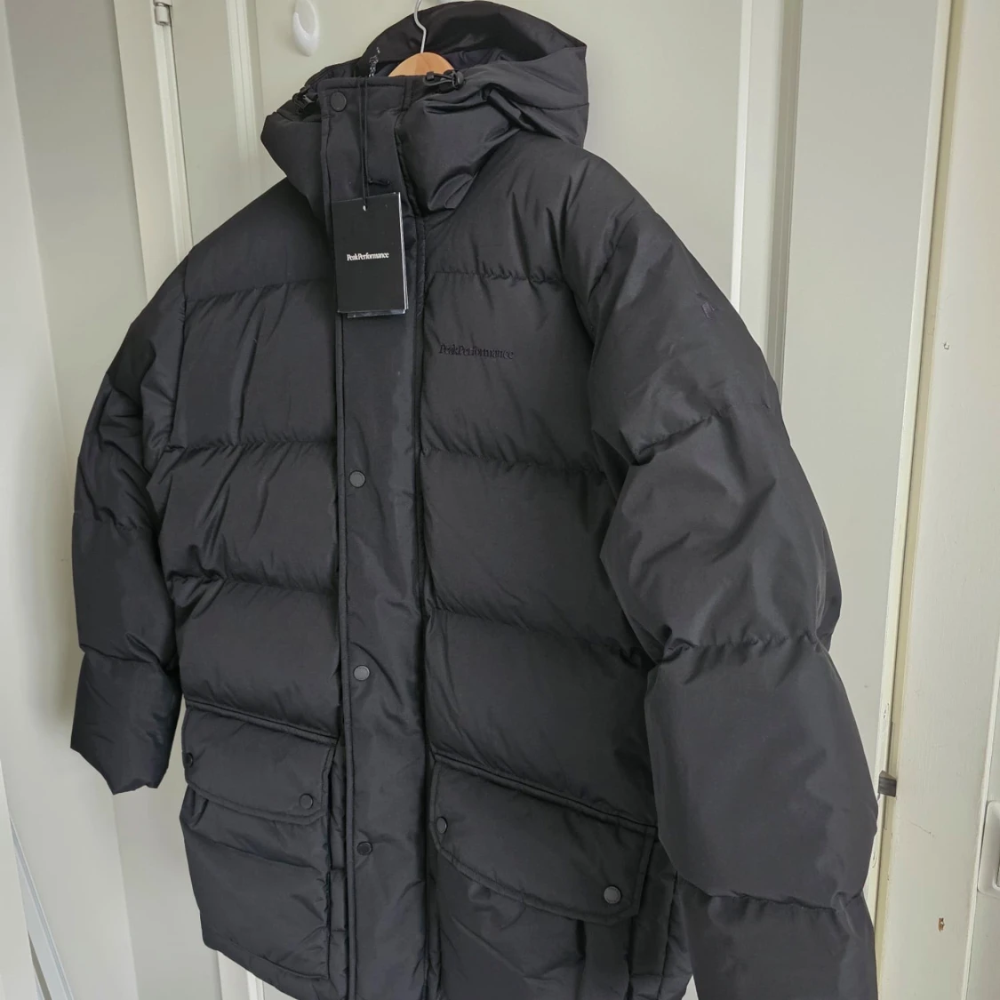 Säljer en svart pufferjacka från Peak Performance för 2500kr, org pris 7000kr. Jackan är perfekt för kalla dagar med sin höga fyllkraft på 700 och en blandning av 90/10 dun. Den har en stilren design med broderad logga och praktiska fickor. Jackan är i nyskick och har fortfarande etiketten kvar.