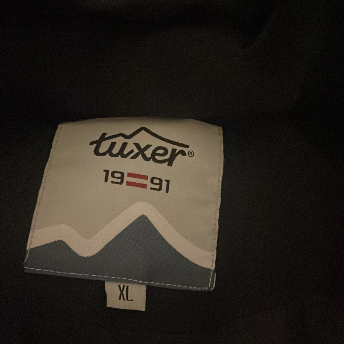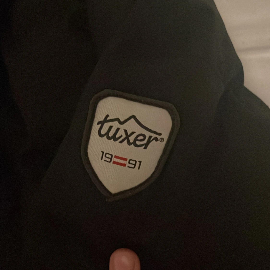 Svart pufferjacka från Tuxer i storlek XL med huva och dragkedja framtill. Jackan har två sidofickor med dragkedja och en snygg Tuxer-logga på ärmen. Perfekt för kalla dagar med sin vadderade design och stilrena look. Ops sönder dragkedja