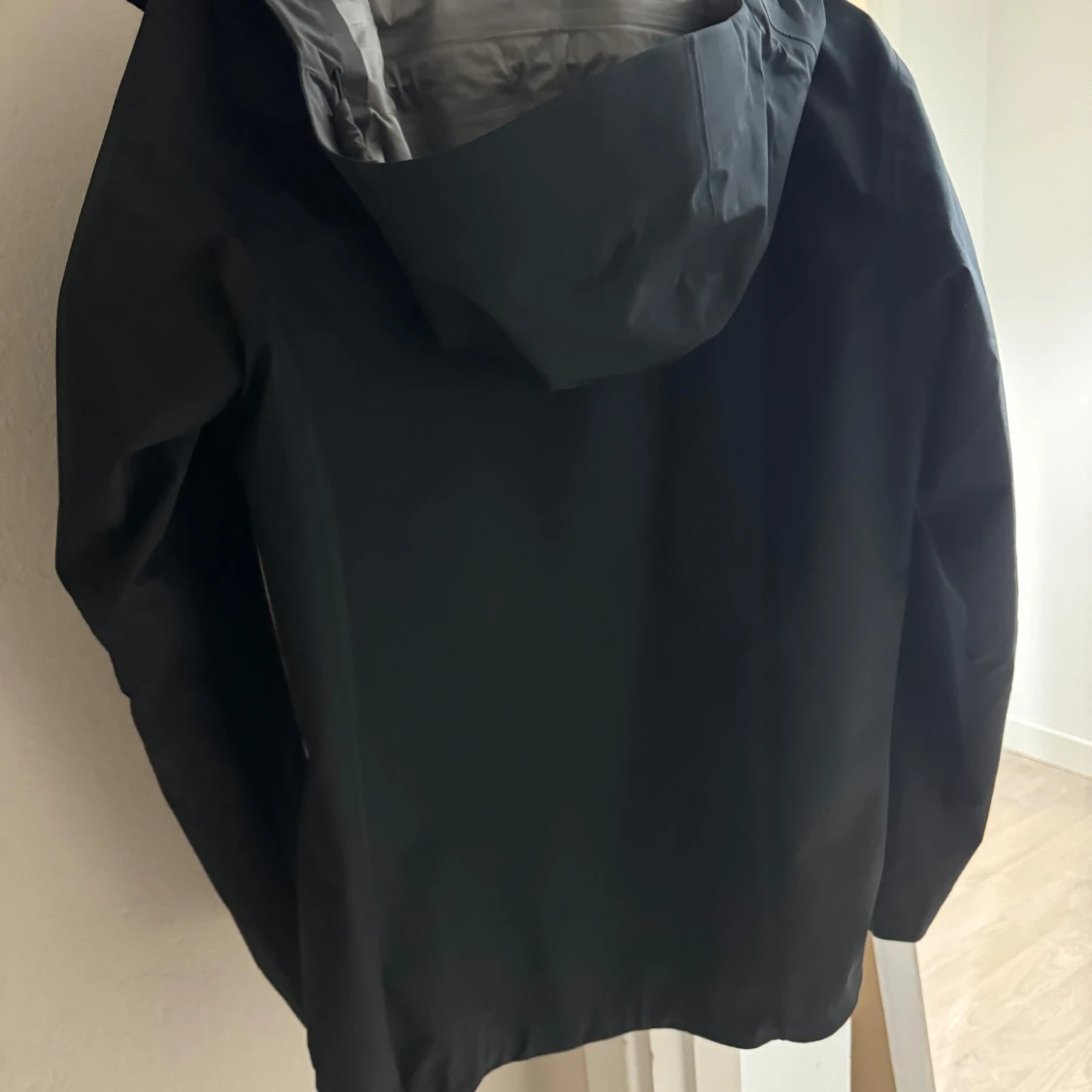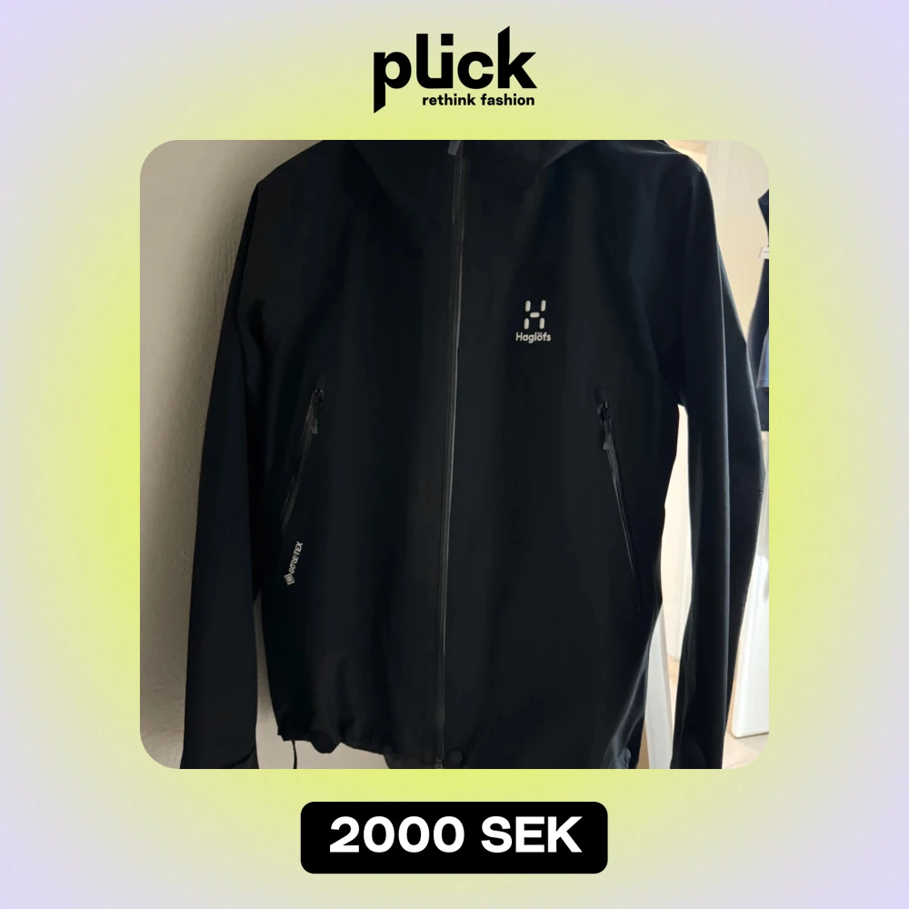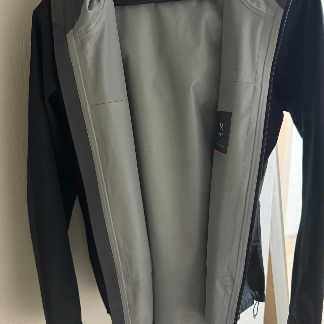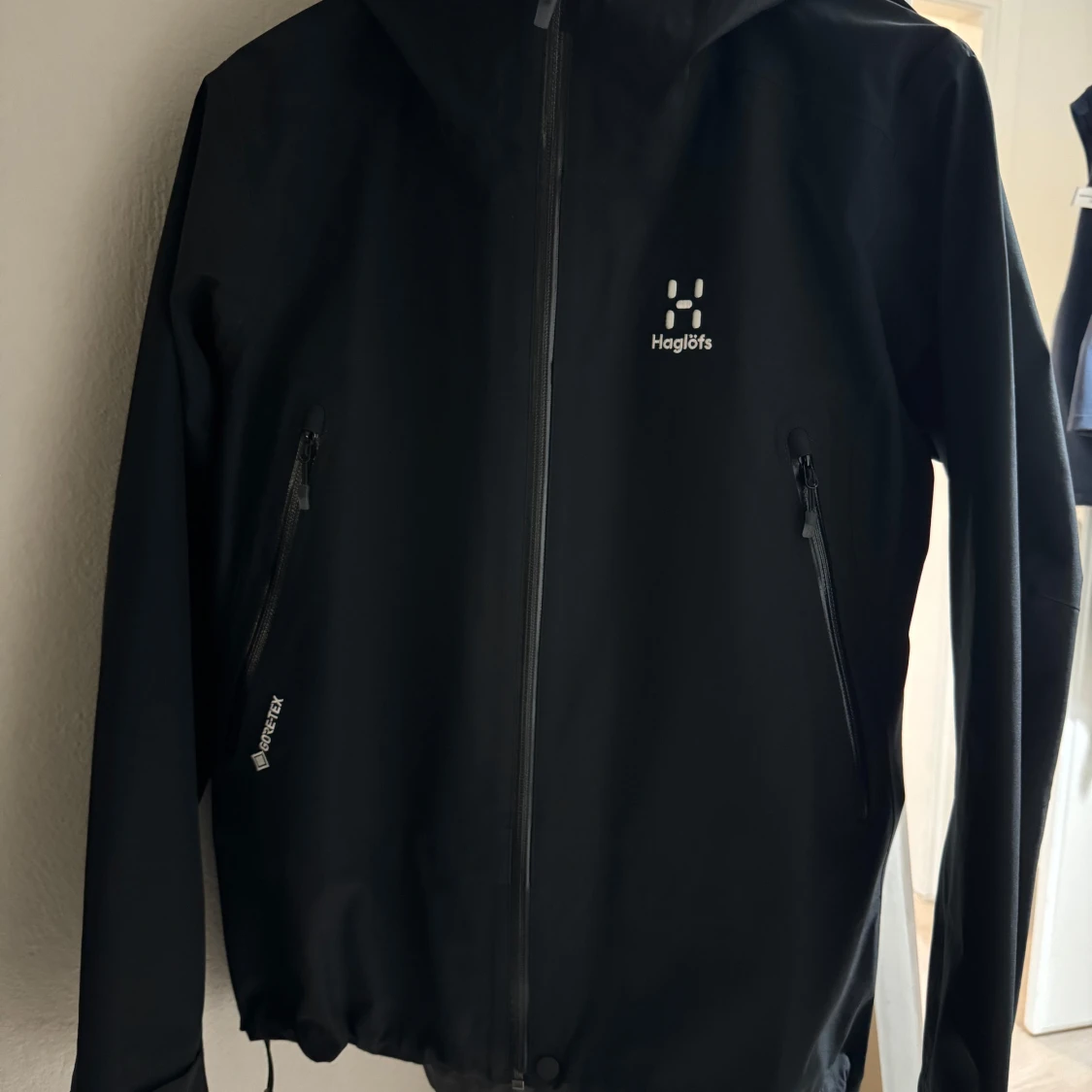 Säljer en svart regnjacka från Haglöfs i mycket bra skick. Jackan har en praktisk huva och dragkedja framtill. Perfekt för regniga dagar och utomhusaktiviteter. Den är både stilren och funktionell, vilket gör den till ett måste i garderoben. Passar perfekt för höst och vår!
