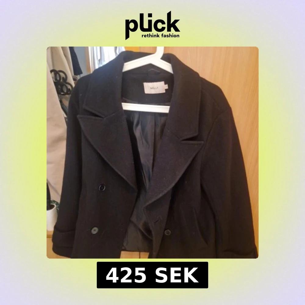 Stilren svart skepparkavaj från Nelly med dubbelknäppning och bred krage. Jackan är i ullblandning, har långa ärmar och klassisk passform. Perfekt för dig som vill ha en tidlös look med edge.