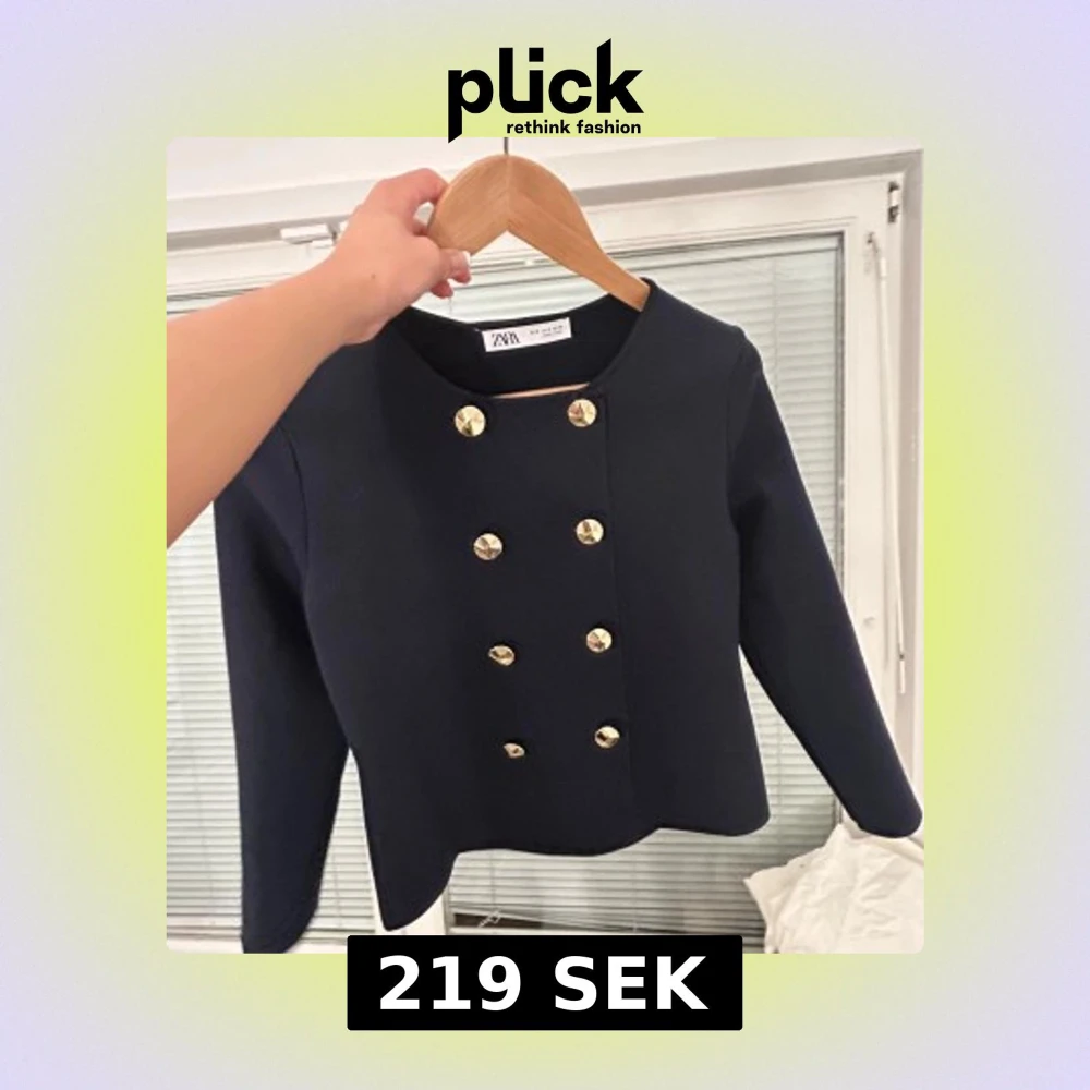Snygg mörkblå skepparkavaj från Zara med guldiga knappar framtill. Jackan har en rak och kortare passform, rund halsringning och långa ärmar. Perfekt för dig som gillar klassisk stil med en modern twist. Aldrig använd. Pris diskuterbart❤️