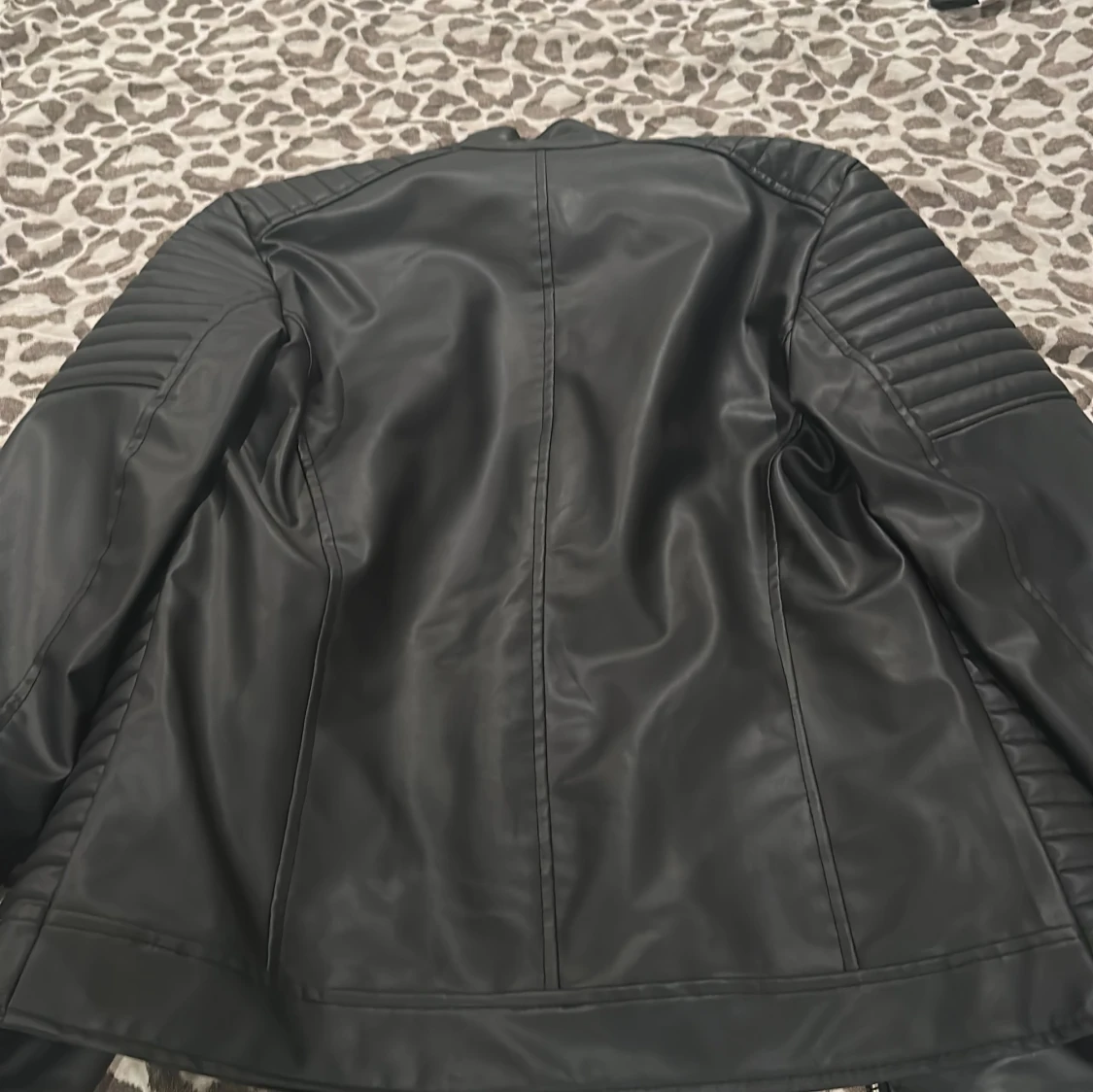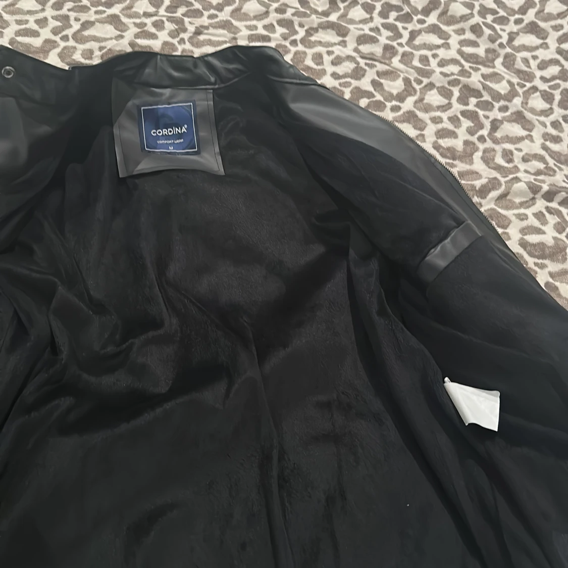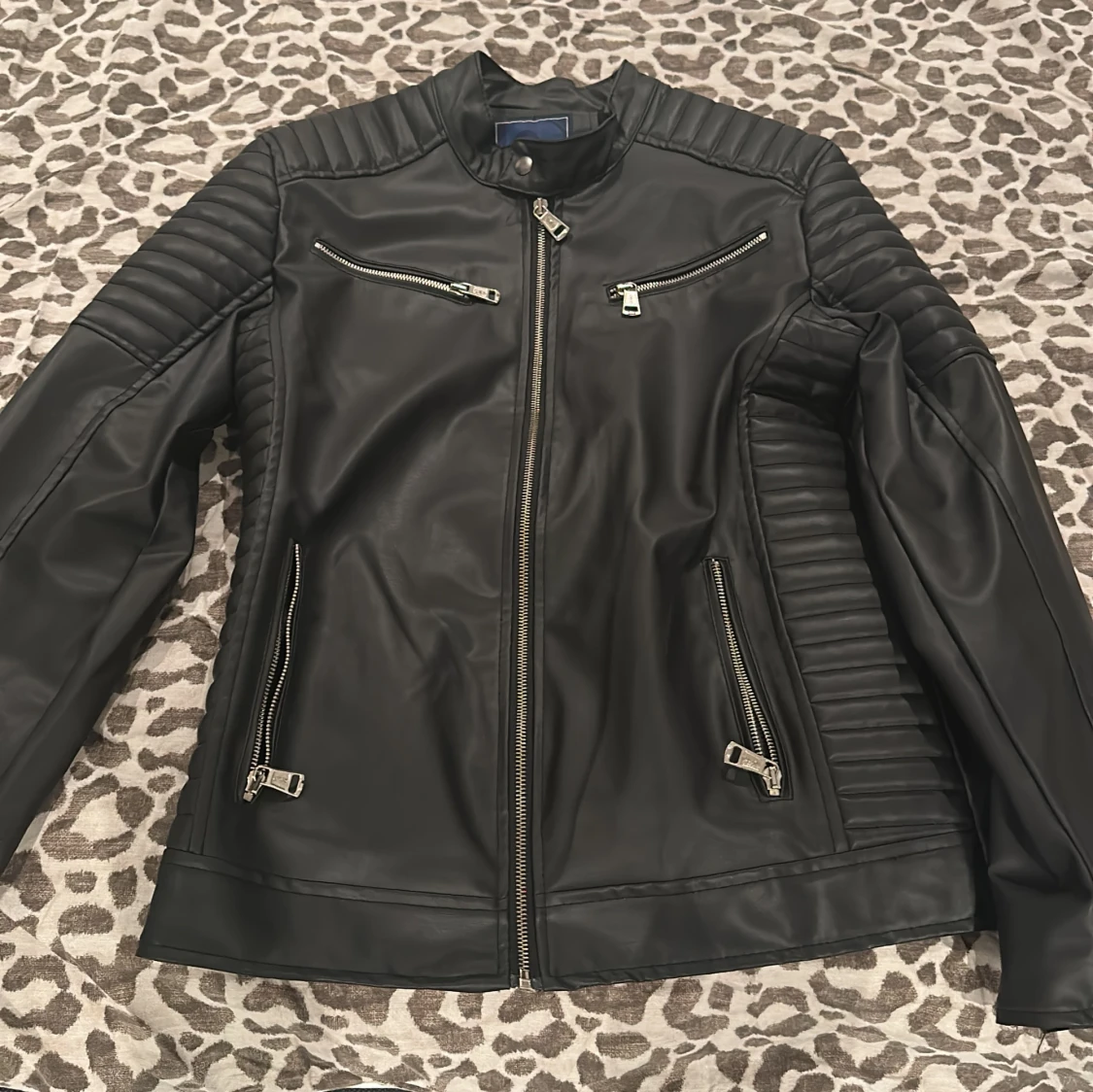 Säljer en svart skinnjacka från Cordina i storlek M. Jackan har snygga quiltade detaljer på axlar och ärmar, dragkedjor framtill och flera fickor med dragkedja. Perfekt för dig som gillar en stilren och edgy look.
