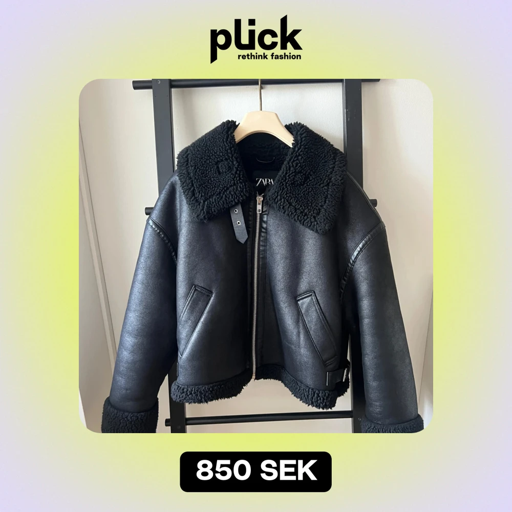 Säljer en snygg svart skinnjacka från Zara med mjukt foder. Jackan har en cool krage och dragkedja framtill. Perfekt för höst och vinter! 🖤