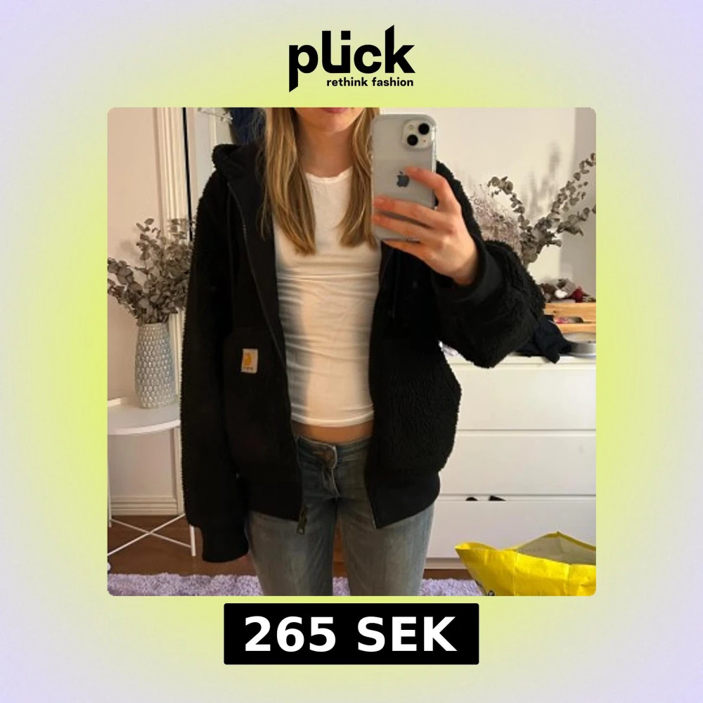Jättesnygg svart lite oversized teddyjacka med luva från carhartt🧸väldigt varm och mysig så passar perfekt till hösten/början av vintern🍁superfint skick!
