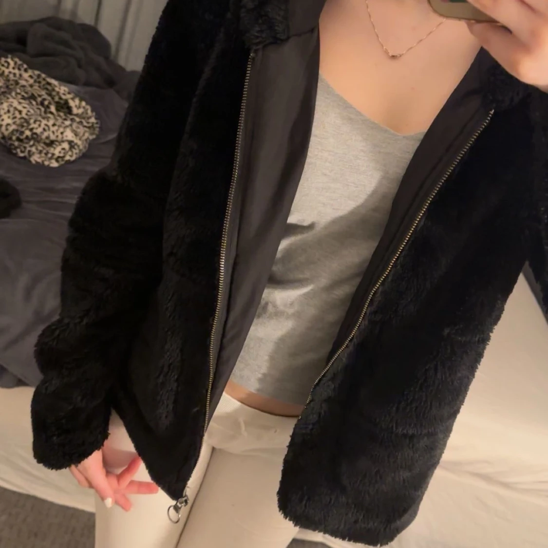 Mysig svart teddyjacka från ONLY med dragkedja framtill. Perfekt för kyliga dagar med sin fluffiga och mjuka textur. Jackan har långa ärmar och en normal passform som gör den bekväm att bära. Ett måste för garderoben! 🖤