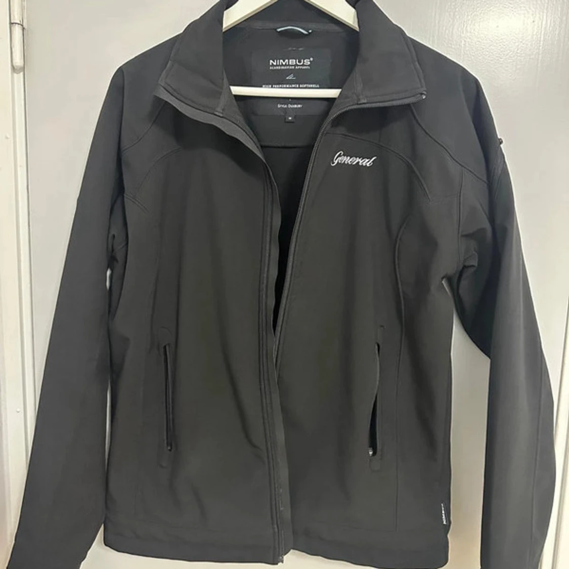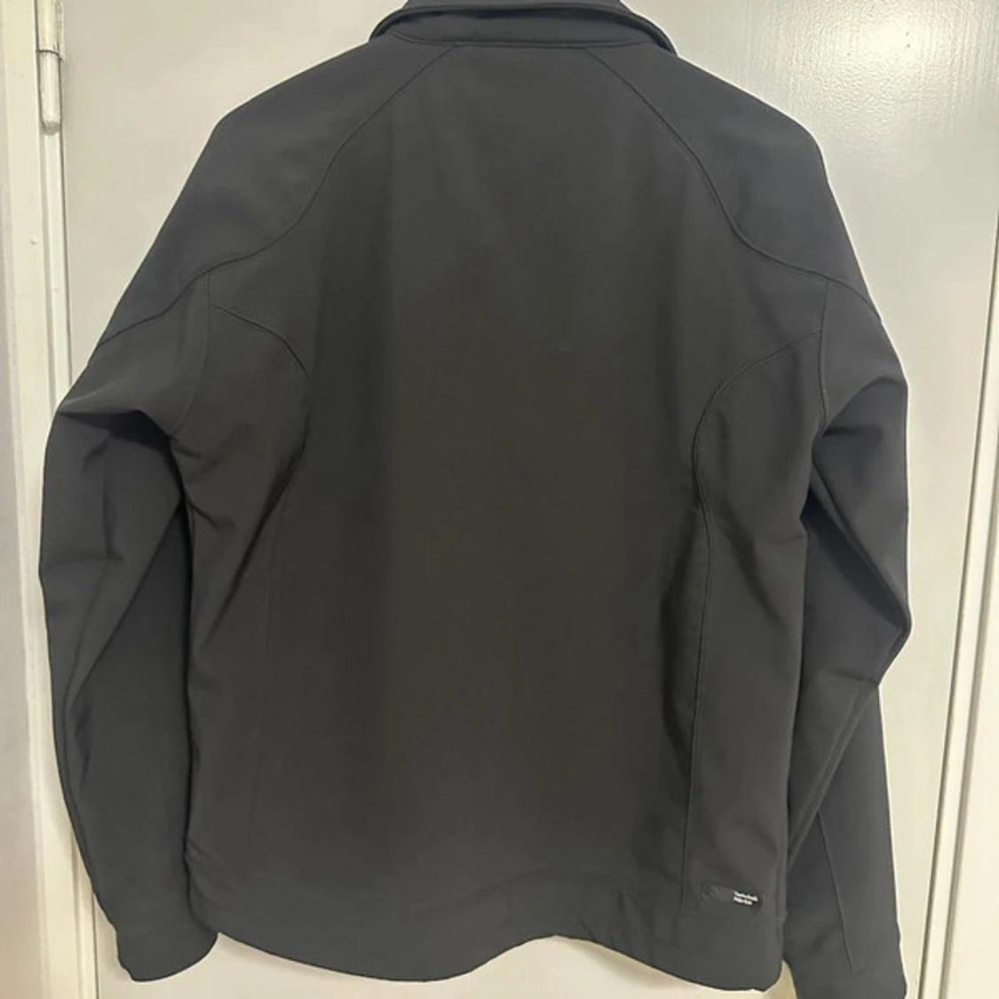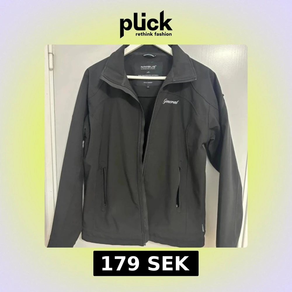 Svart vindjacka med dragkedja framtill och två fickor. Storlek L men det passar till ni som brukar ta på M storlek.