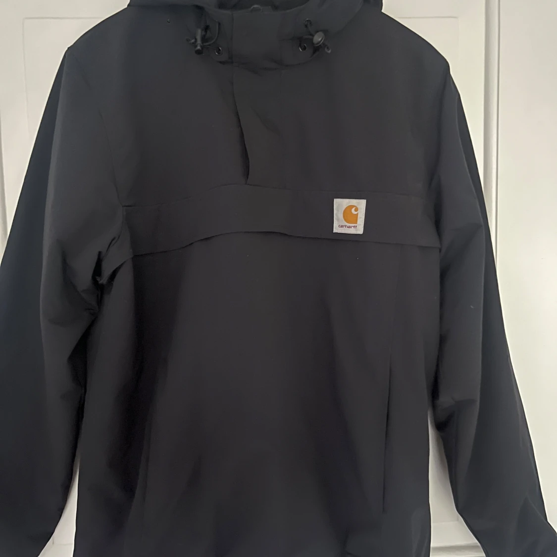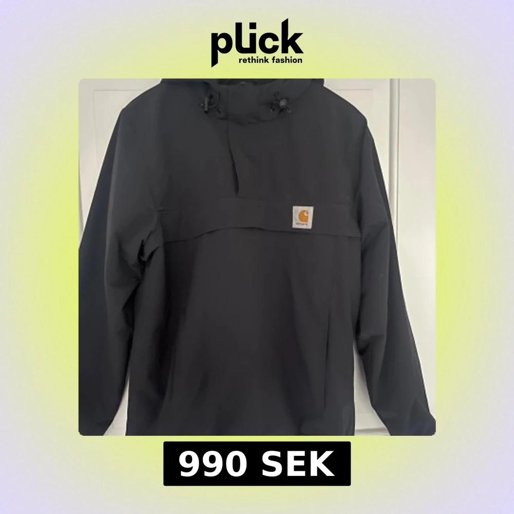 Svart vindjacka med fodring inuti från Carhartt WIP med huva. Jackan har en klassisk logopatch på bröstet och är tillverkad i slitstark polyester. Perfekt för dig som gillar streetwear och enkel stil. Sitter lite mer som M. Perfekt till höst och vinter. Hör av dig vid funderingar 👍