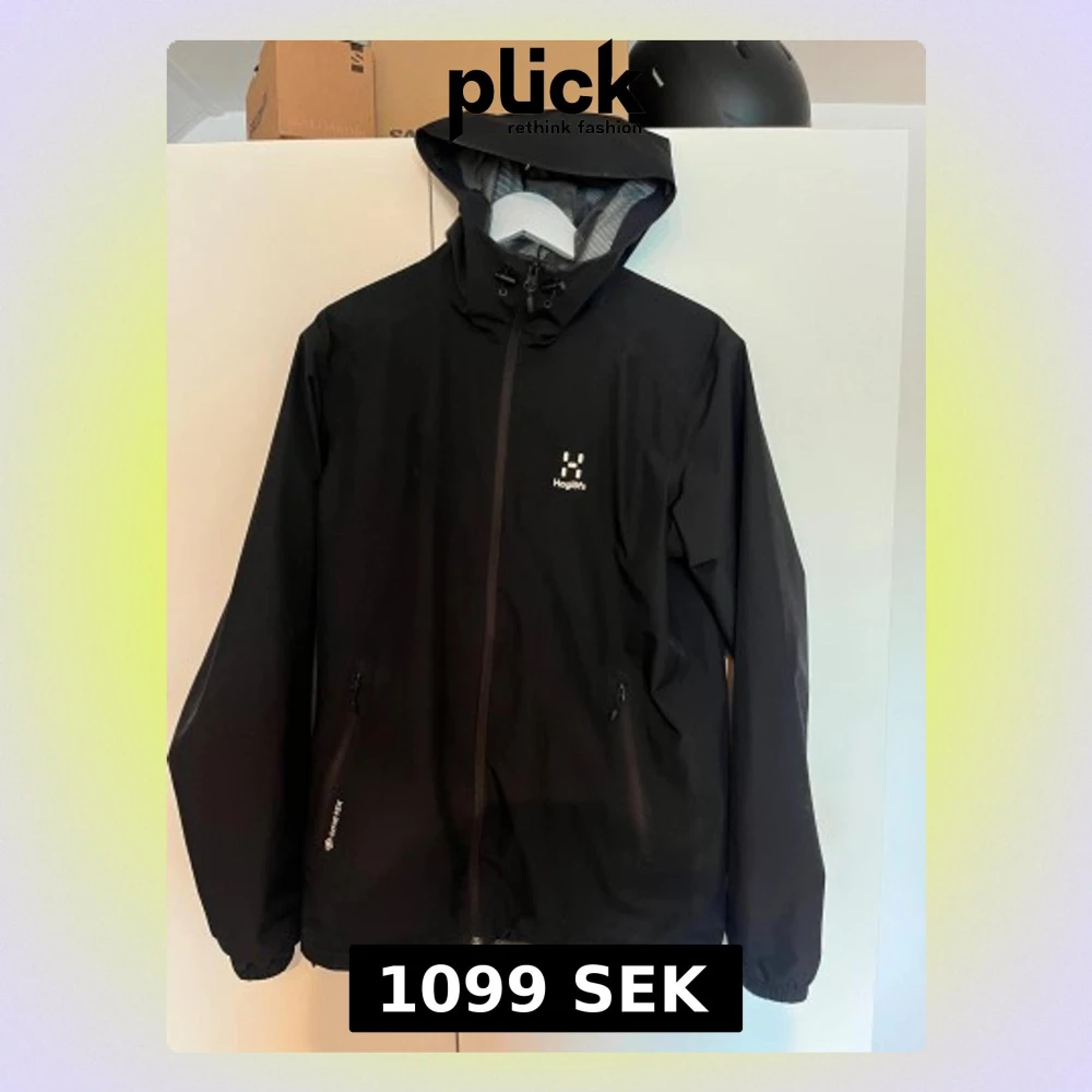 Svart Gore-Tex vindjacka från Haglöfs i storlek S. Är stor i storleken så passar även M och möjligtvis L. Jackan är i ett fint skick och köptes ny i Februari