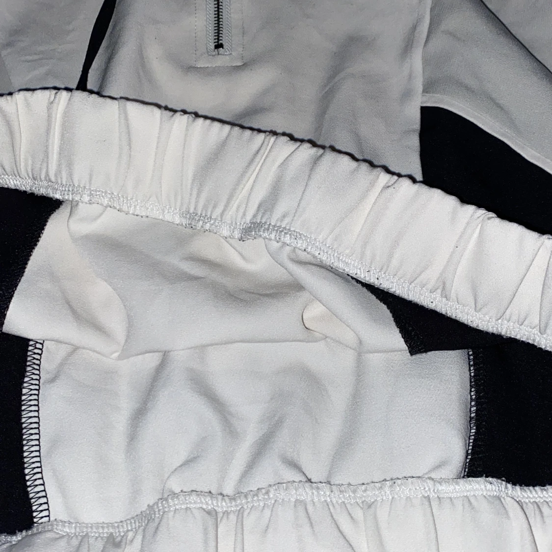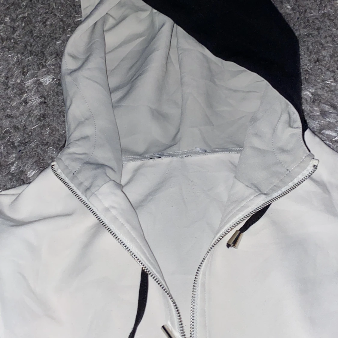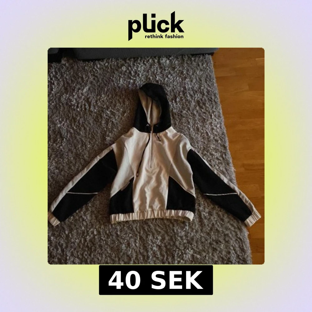 Säljer en svartvit vindjacka med coola paneler och half zip framtill. Jackan har luva med snörning och elastisk nederkant för skön passform. Materialet känns som syntet och polyester, perfekt för blåsiga dagar. Långärmad och loose fit för chill stil.