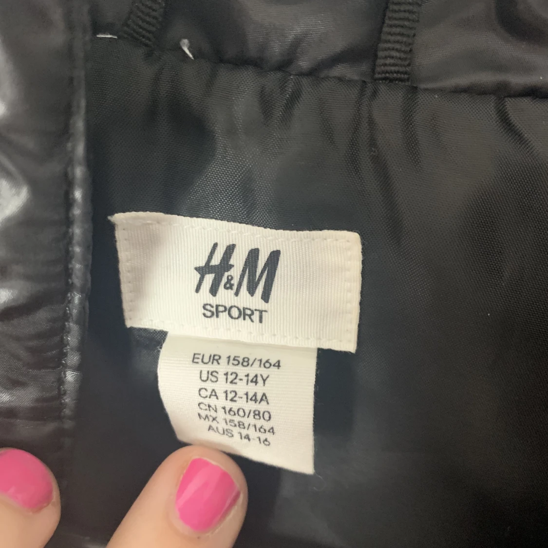 En lite tunnare väst perfekt till träning eller till senare våren😊 det står 158/164 och jag skulle säga att det motsvarar xs-s kanske även en mindre m