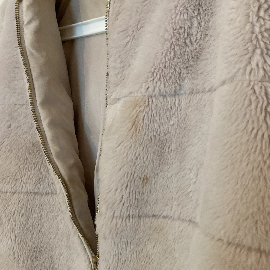 Mysig beige teddyjacka från ONLY med dragkedja framtill. Jackan har en fluffig textur och är perfekt för kyligare dagar. Den har en normal passform och långa ärmar. Liten sminkfläck men går bort i tvätten o den tvättas innan den ska postas