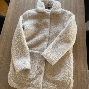 Säljer eftertraktad vit/beige teddyjacka i storlek XS ifrån H&M. Den är väl använd och har lite lurv som sticker ut men det går såklart att klippa bort🧸