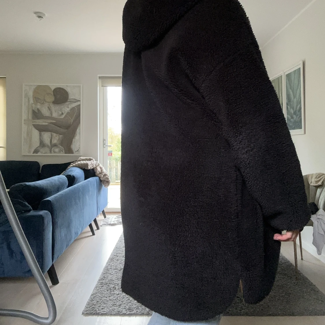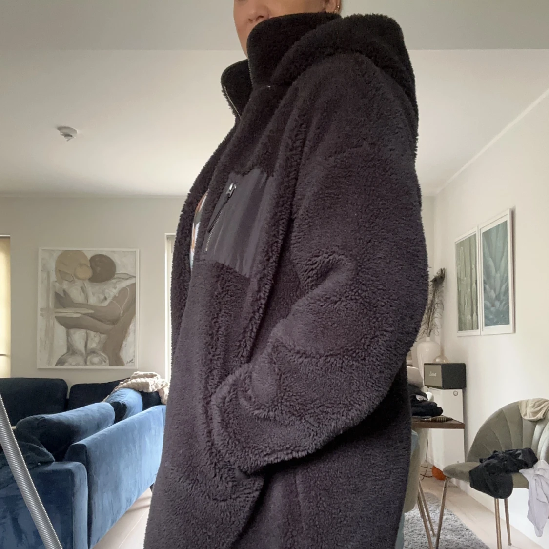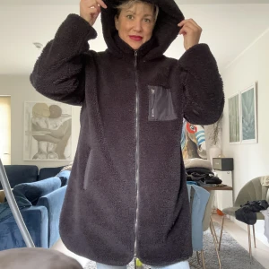 En mysig jacka som är super varm och go! Med huva och hög krage med dragkedja och fickor, lång i armar!