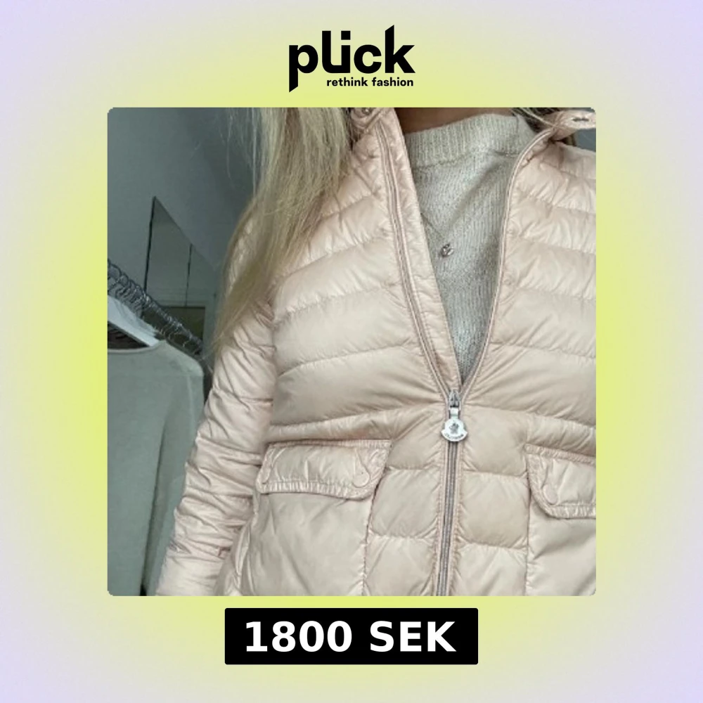 Säljer en snygg ljusrosa dunjacka från Moncler med klassisk logga på ärmen. Jackan har quiltad design, dragkedja framtill och två fickor med lock. Perfekt för dig som vill ha en stilren och trendig jacka med exklusiv känsla. Kom priv för frågor osv