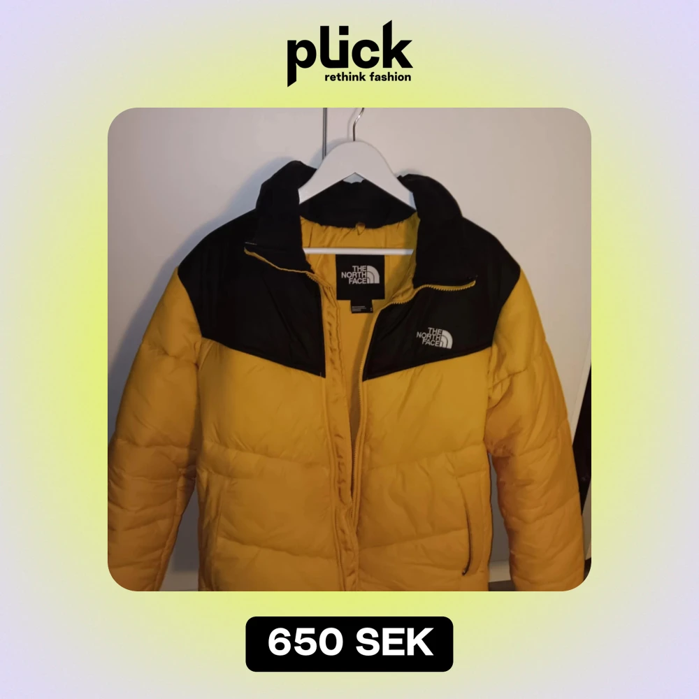 Säljer en skit snygg gul och svart north face puffer jacka jackan är använd i ungefär 1 vinter säsong den har även en liten reva vid armen men den är knappt synlig jackan är också nyligen hand tvättad med skicklighet