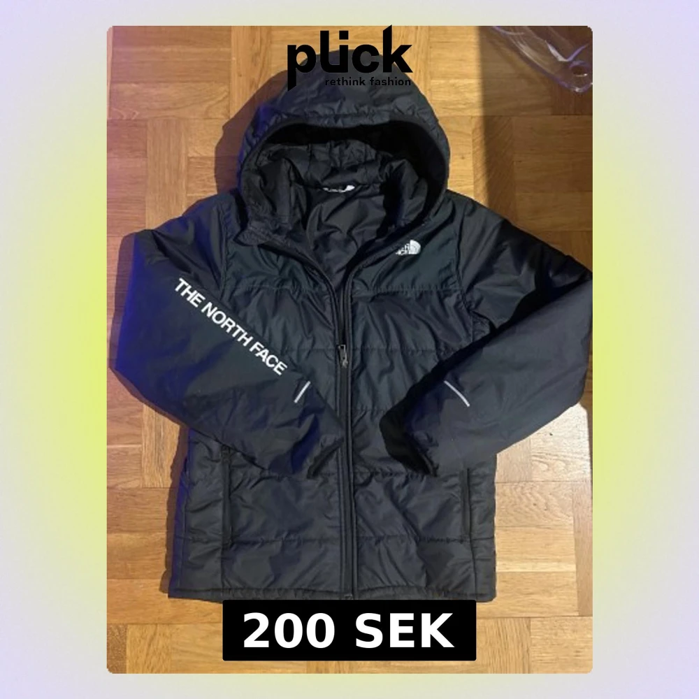 Svart pufferjacka från The North Face med huva och dragkedja. Jackan har logga på bröstet och ärmen, samt diskreta reflexdetaljer. Tillverkad i syntetmaterial och har en quiltad look. Perfekt för kyliga dagar och riktigt snygg streetstil.