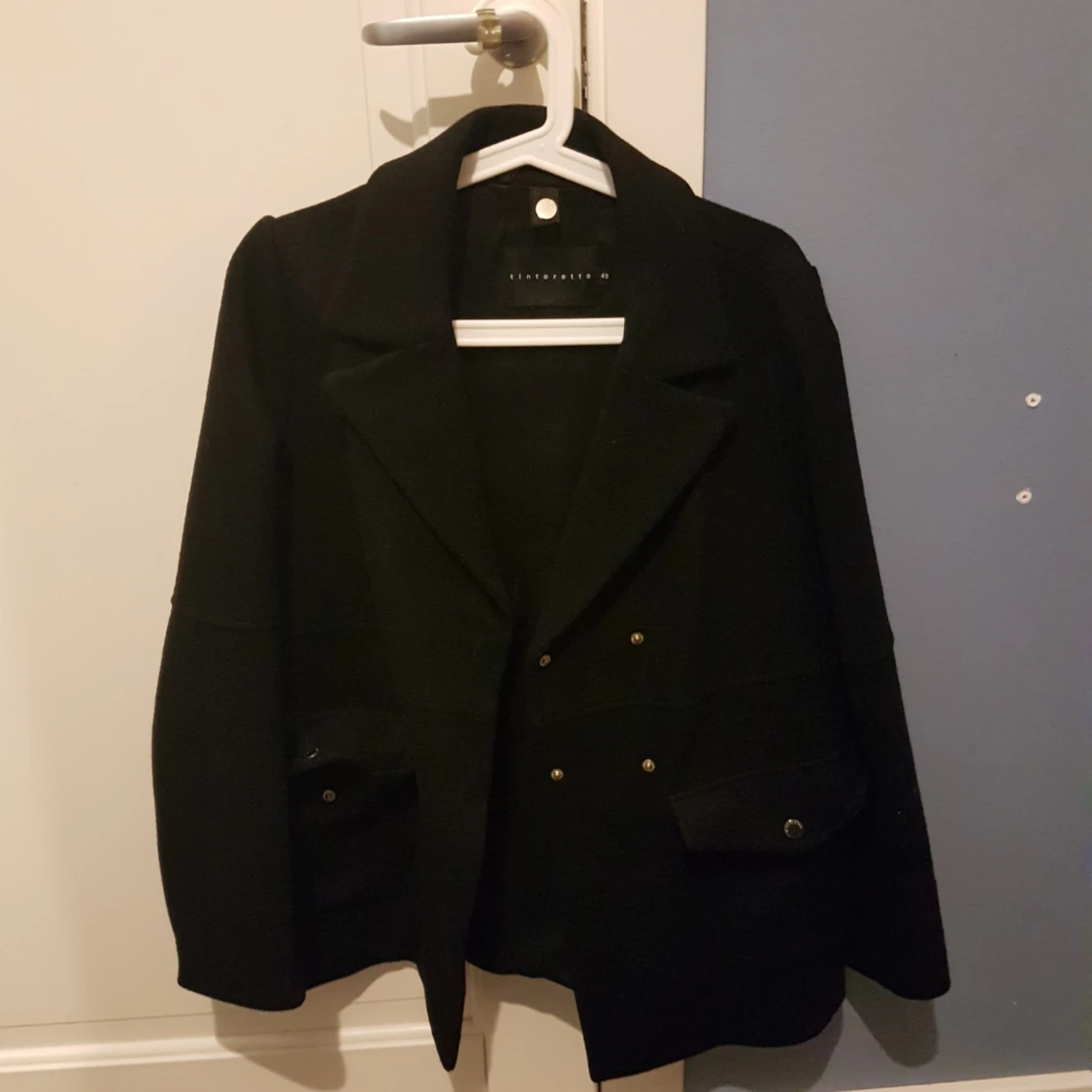 Svart ull jacka med guld knappar. Jätte skön och varm, det bara passar inte min stil. Köpt i spanien för två år sen men i jätte bra stick, bara använt ett par gånger. Jäg använder storlek 36 egentligen så den e inte så stor som man tror !