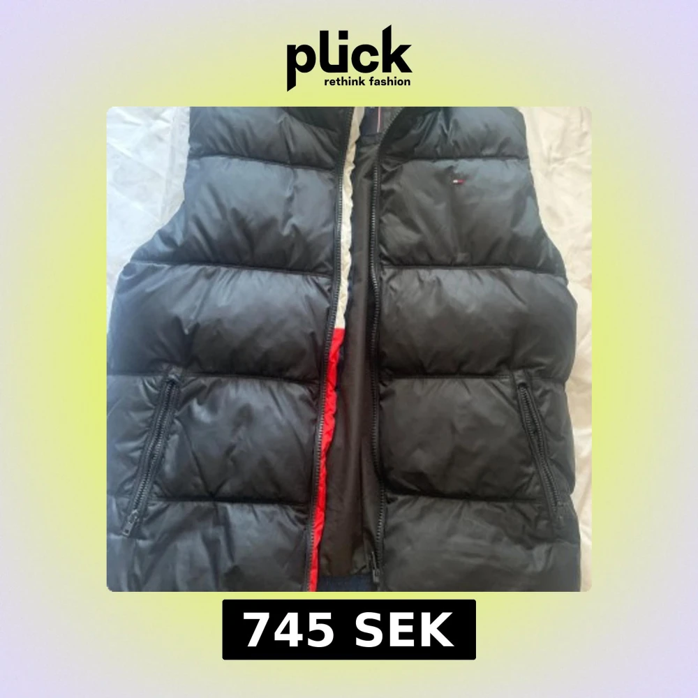 Svart dunväst från Tommy Hilfiger med quiltad design och två dragkedjeförsedda fickor. Västen har en diskret logga på bröstet och är fodrad med tekniska fibrer för extra värme. Perfekt att slänga över en hoodie när det är kyligt ute. Pris går att diskuteras, den är L i barn storlek o passar bra som s/36