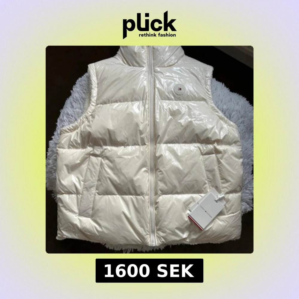 Säljer en fluffig vit dunväst från Tommy Hilfiger. Vändbar design med glansig dunyta på ena sidan och mjuk fleece på andra. Hög krage med broderad logga, två fickor och dragkedja framtill. Aldrig använd. prislapp kvar. Sitter mer som en L. Nypris 2600