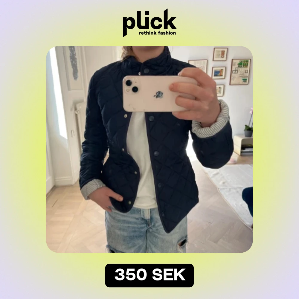 En superfin vårjacka från gant, quiltat tyg. På utsidan är den mörkblå och på insidan är den blå/vit randig. Aldrig använd!! Nypris 2800kr