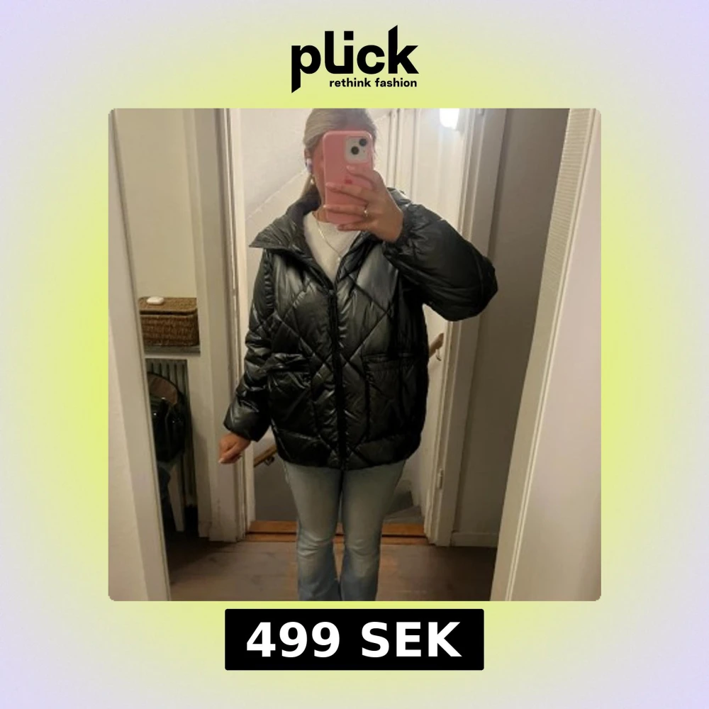 Säljer en svart pufferjacka med quiltat mönster och stor huva. Jackan har dragkedja framtill, två stora fickor och en oversized passform. Perfekt för kalla dagar och riktigt snygg till jeans eller mjukis. Materialet är glansigt och känns riktigt modernt.