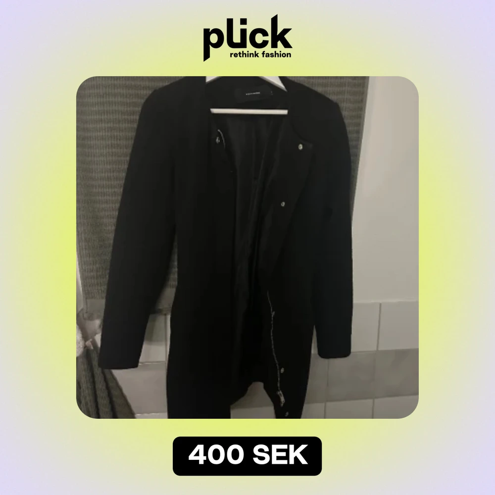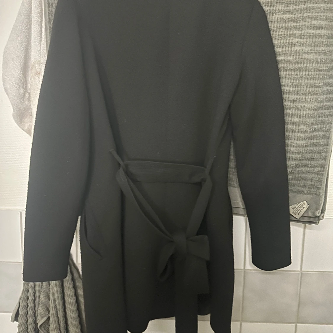 Svart halvlång kavaj jacka med snöre runt midjan som man kan knyta om man vill.