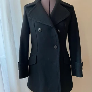Säljer min svarta fina ullkappa, en kortare modell med fin fit. Den slutar precis under rumpan. Använd den öppen för lite lösare fit eller helt knäppt för figursydd passform. Jättefin kvalitet och väldigt hållbar modell. Använt den i något år och ser lika fin & ren ut idag! Den har insnitt både bak- & framtill så den sitter slimmat och perfekt på kroppen. Oklart märke och står strl 38 i, men jag är själv 36 och den sitter som en smäck på mig. Knapparna är olika vilket jag älskar!