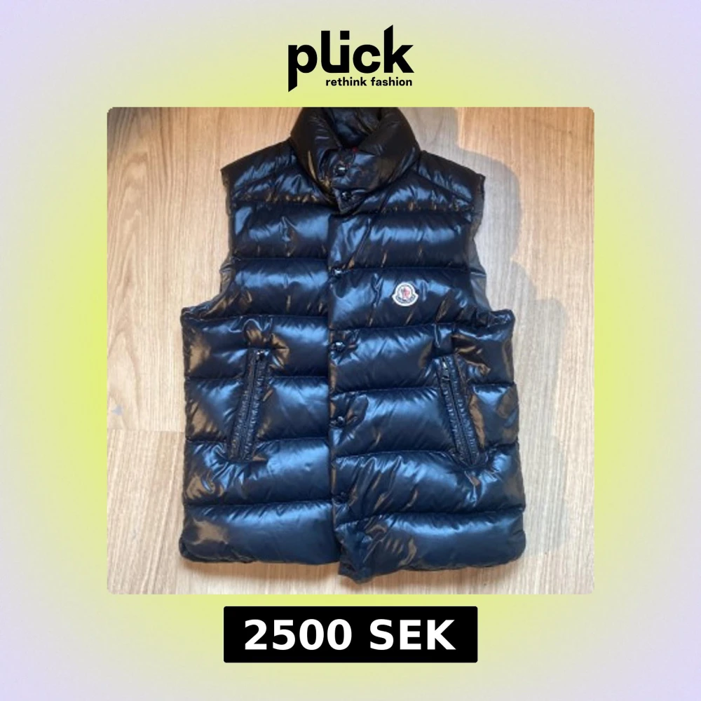 Snygg svart dunväst från Moncler med hög krage och tryckknappar framtill. köptes på nk i 2023 men har ej använts så mycket. Kvitto har tyvärr kastats bort. STORLEK S. Scan funkar för äktenhet. kan mötas i Stockholm eller frakt.