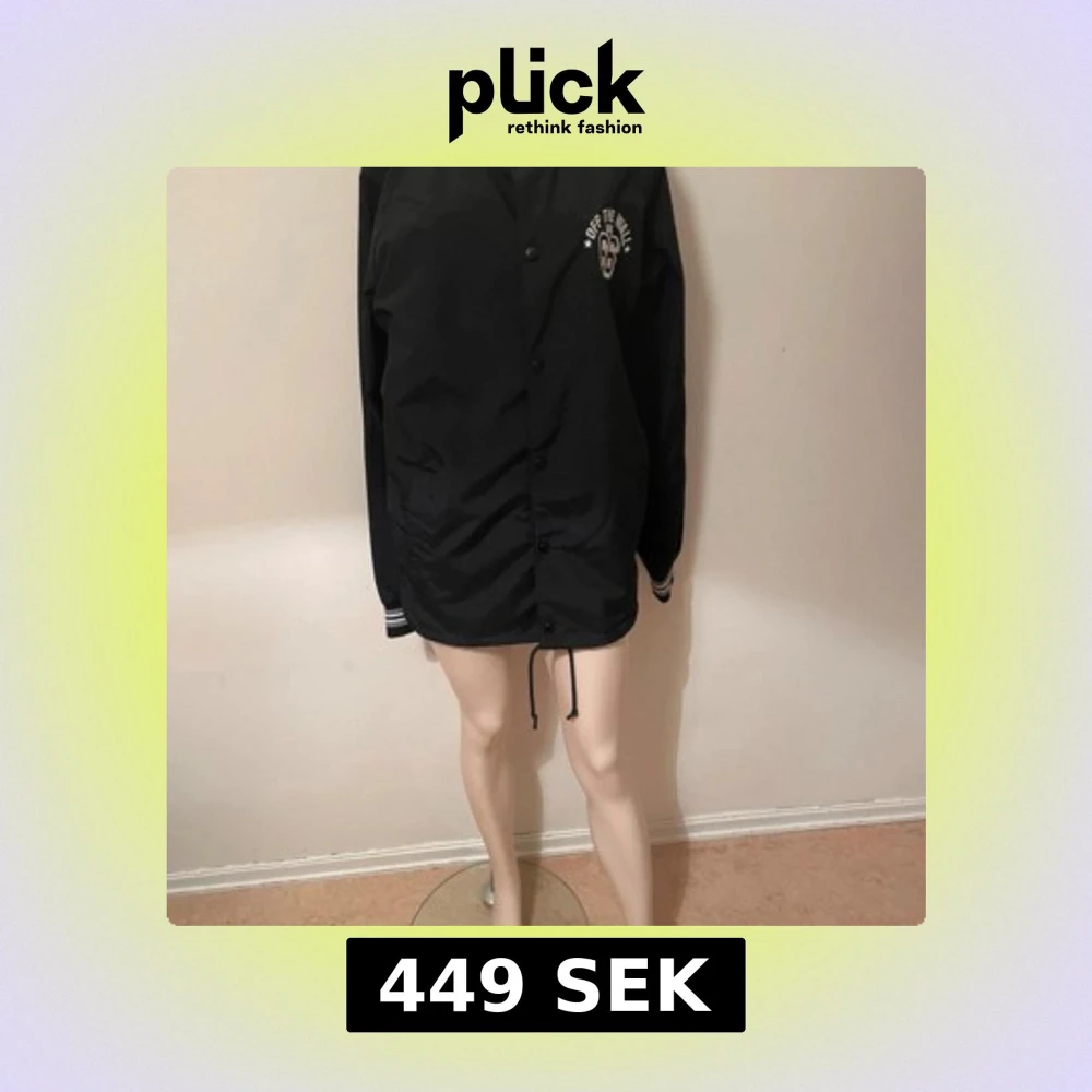 Svart vindjacka från Vans med tryck 'Off The Wall 66' på bröstet. Jackan har knäppning framtill, dragsko nertill och randiga muddar vid ärmsluten. Tillverkad i polyester och har en clean, sportig look som passar perfekt till streetwear.