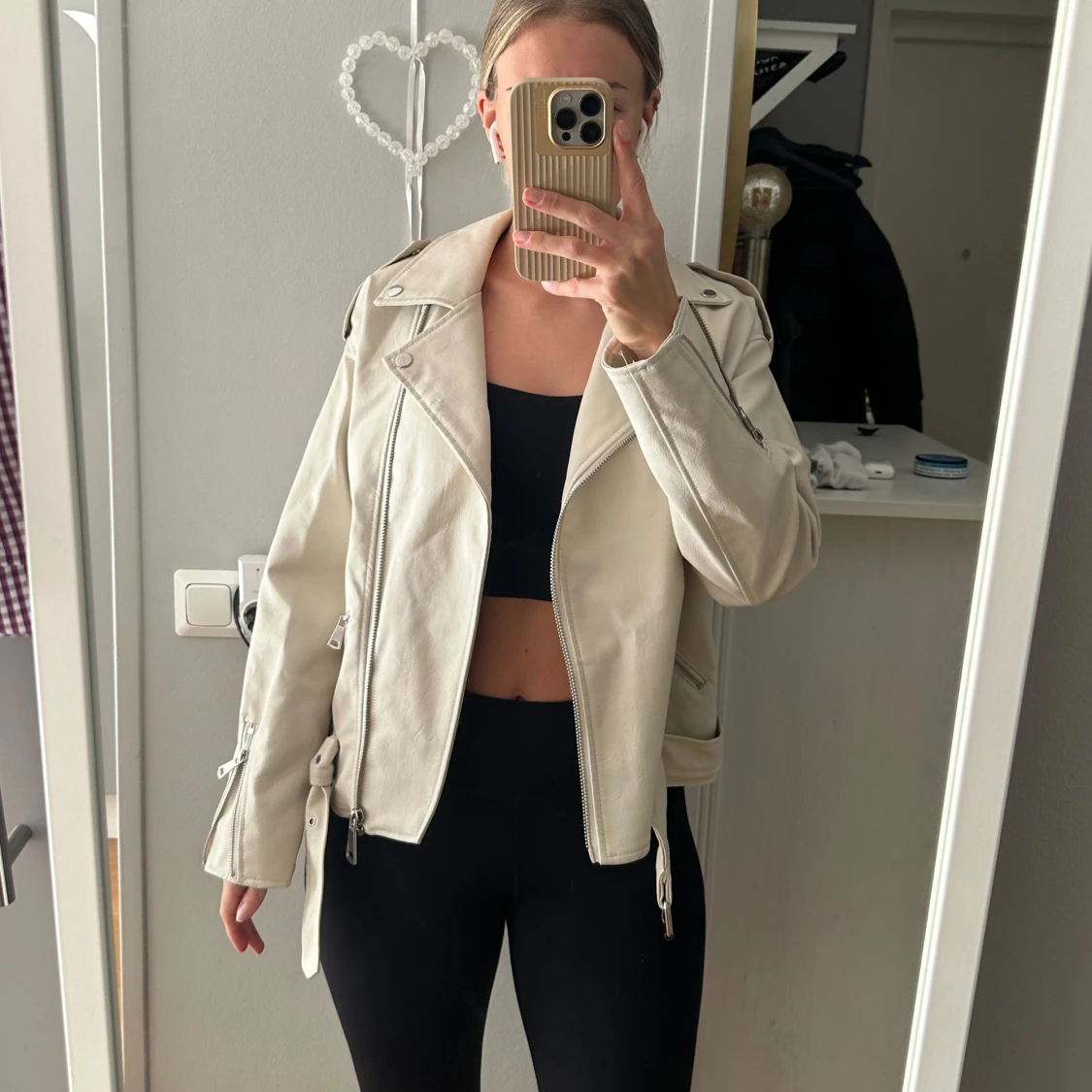 Beige skinnjacka i något matt material (PU) i strl 36 (Har vanligtvis S/M). Från Missguided men köpt på Nelly.com Kan skicka mot fraktkostnad alternativt hämtas/mötas i Stockholm💕