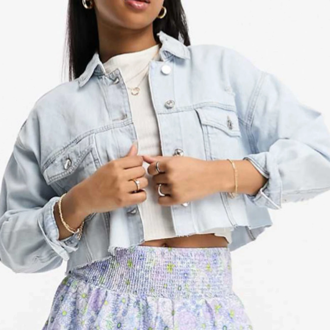 Snygg jeansjacka från stradivarius😍använd fåtal gånger, pris går kanske att diskuteras