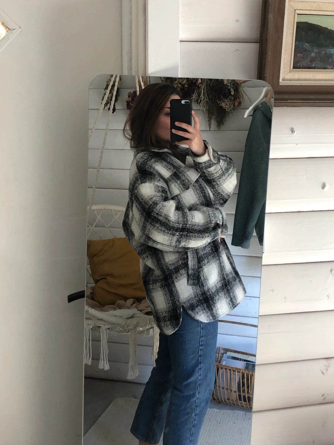Säljer en vårjacka i rutigt skjort-material. Storlek L så den är lite oversized med precis lagom.