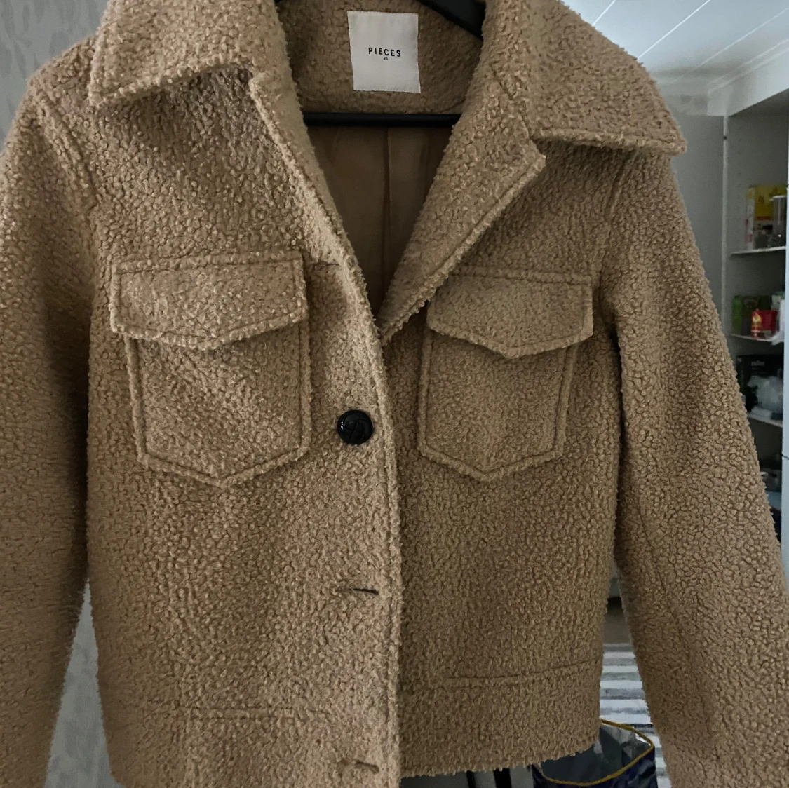 Säljer en mysig beige teddyjacka från Pieces. Jackan har stora knappar och två bröstfickor med lock. Perfekt för kyliga dagar när du vill hålla dig varm och stilren. 🧥✨ ett litet hål på insidan vid armen, men inget som syns när jackan är på! Storlek xs, men passar mig som vanligtvis har s!