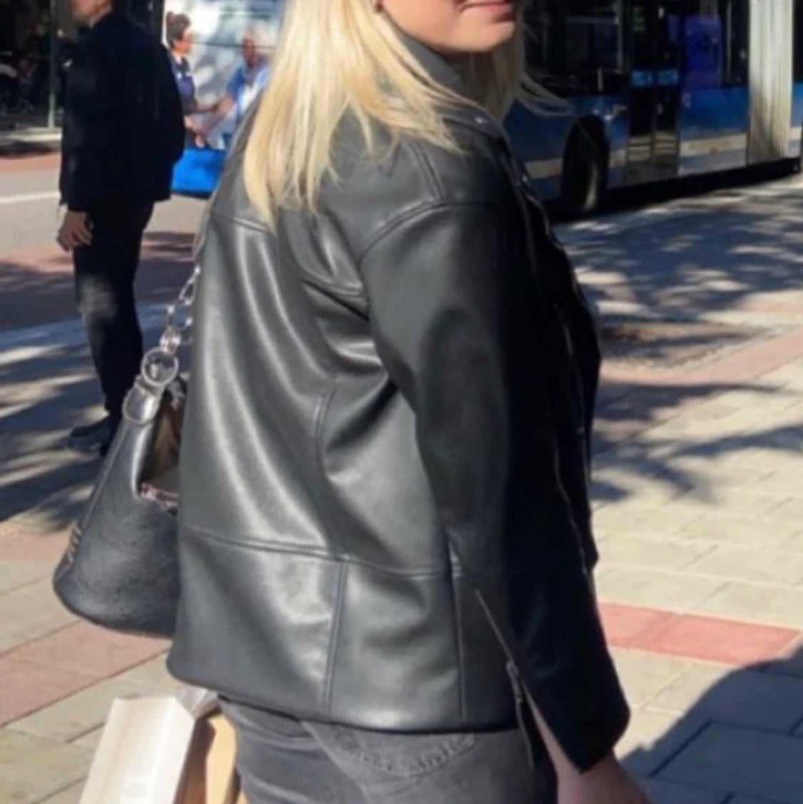 Jättefin skinnjacka som är köpt förra året, den är i bra skick och passar perfekt till våren❤️