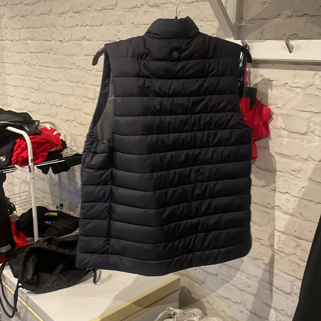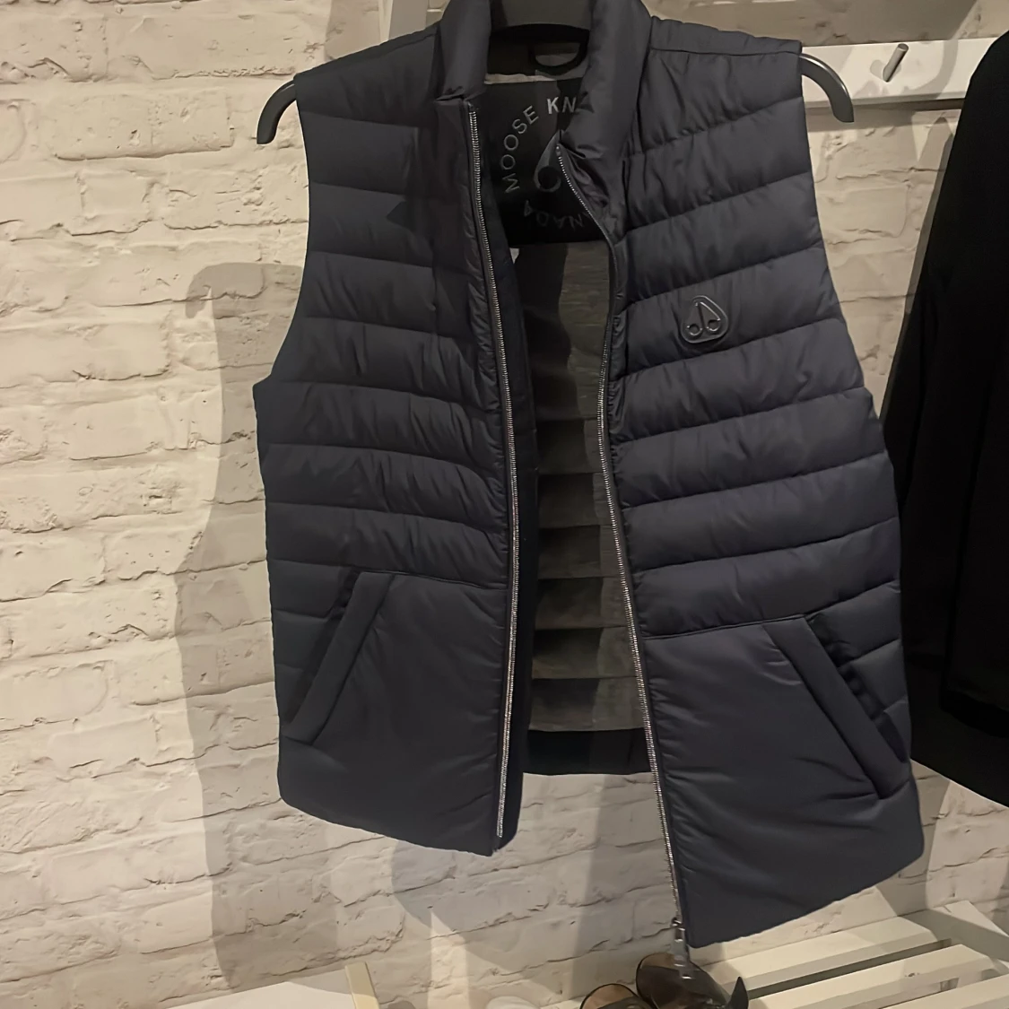 Snygg svart dunväst från Moose Knuckles med diskret logga på bröstet. Västen har quiltad design, hög krage och två snedställda fickor framtill. Perfekt för lager-på-lager och ger en clean och modern look.