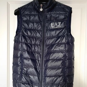 Blå dunväst från Emporio Armani - Snygg blå dunväst från Emporio Armani med EA7-logga på bröstet. Västen har en quiltad design och dragkedja framtill. Perfekt för att hålla värmen med stil. Pris kan diskuteras så hör bara av er