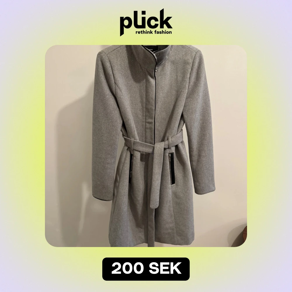 Säljer en stilren grå kappa i mycket bra skick. Den har en elegant design med ett bälte i midjan och dragkedjor vid fickorna. Perfekt för höst och vår! Passar både till vardags och festliga tillfällen.