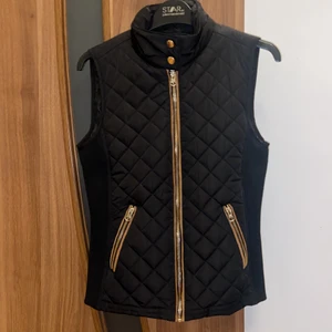 Svart väst med beige/bruna detaljer. Helt oanvänd/ perfekt skikt. Prislappen är fortfarande på. Köpt för 500kr men säljer för 350. Jackan är köpt för några år sedan och finns därför inte kvar på hemsidan. Storlek: xs
