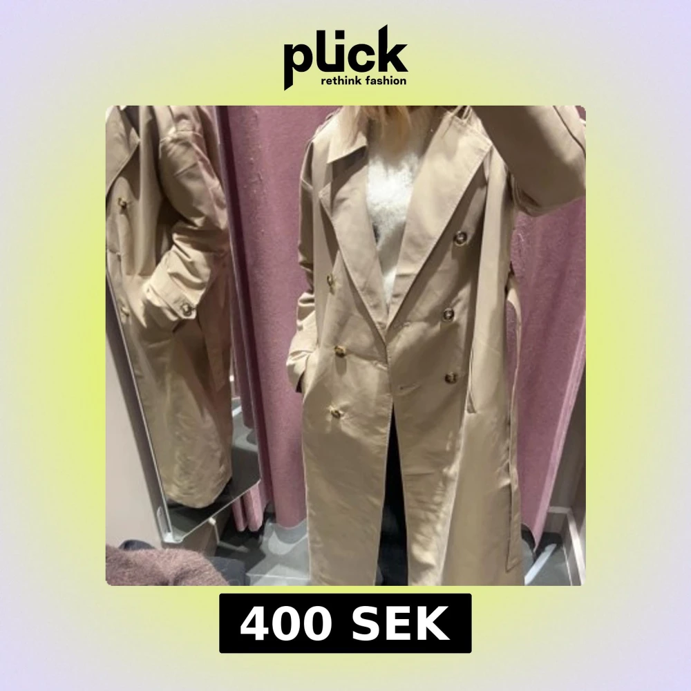 Snygg beige trenchcoat med knappar och bälte i midjan. Klassisk design med långa ärmar och axelklaffar. Endast använd några gånger.