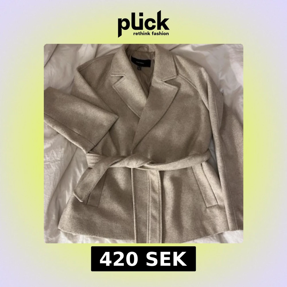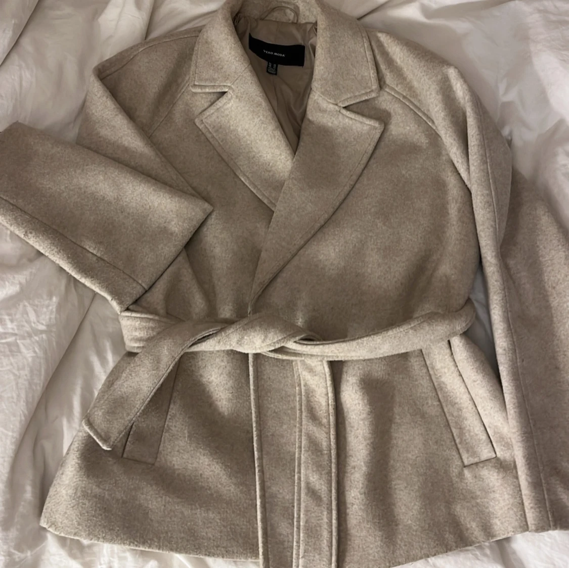 Snygg beige kappa från Vero Moda i klassisk modell med bred krage och knytskärp i midjan. Jackan har långa ärmar . Den är lite nopprig men det går och lösa annars inga problem
