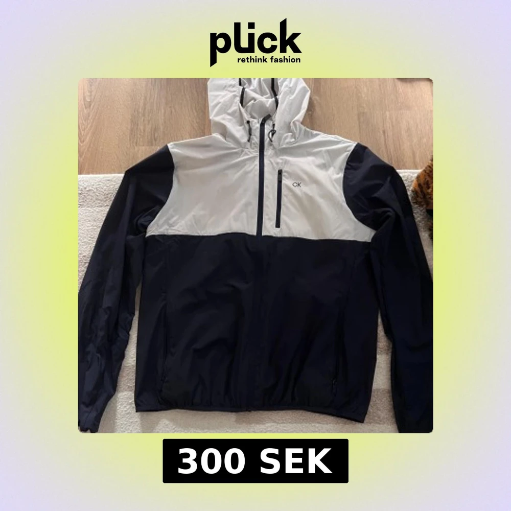 Snygg vindjacka från Calvin Klein i svart och vitt med huva och dragkedja framtill. Jackan har en bröstficka med dragkedja, justerbar dragsko i huvan och diskret CK-logga på bröstet. Perfekt för blåsiga dagar och stilren streetlook.