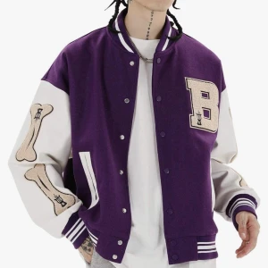 Varsity jacka - Säljer en jättecool lila varsity jacka som jag köpte ifrån aelfric Eden,den är knappt andvänd och har inga defekter original pris var ung 800 kanske/priset går att diskutera vid snabb affär