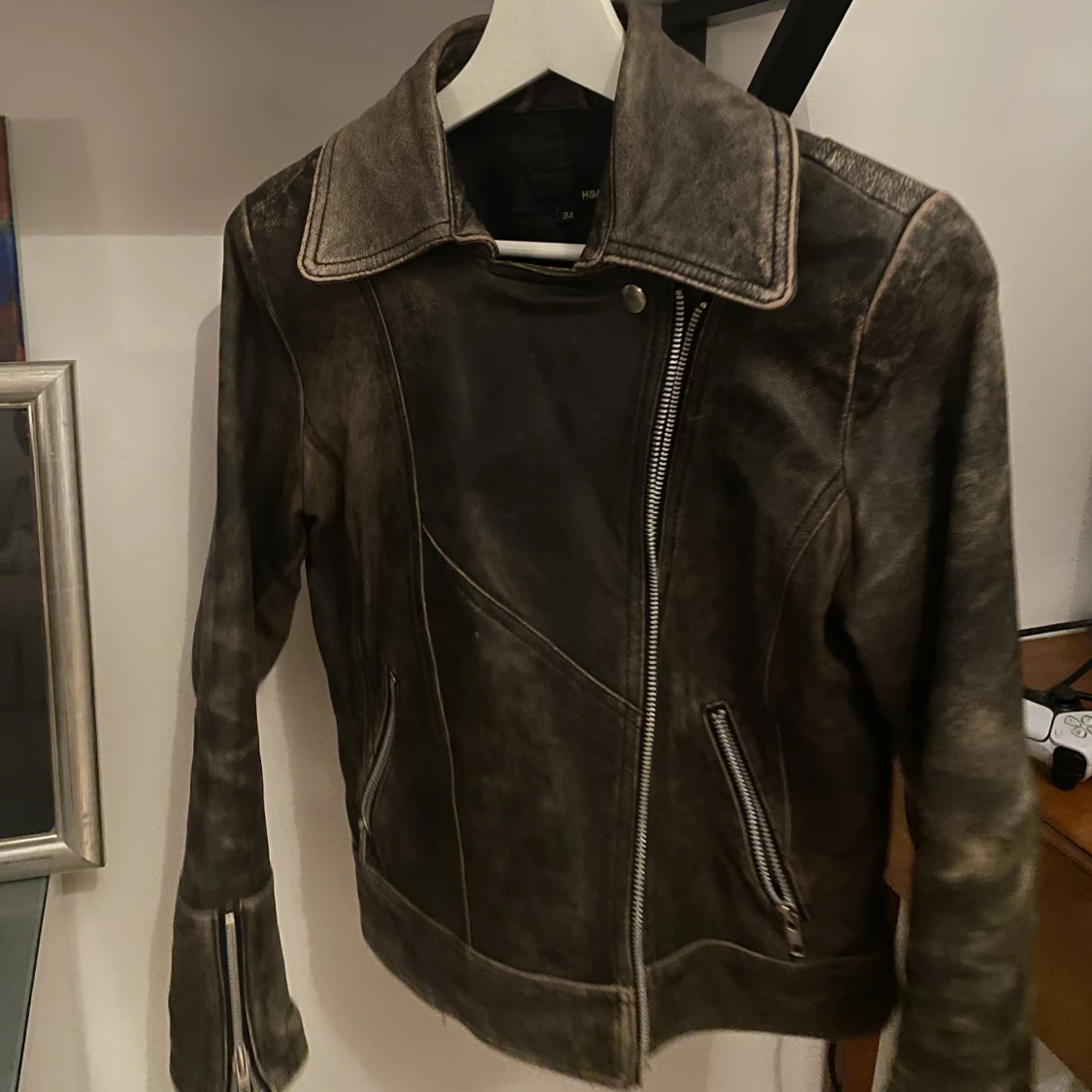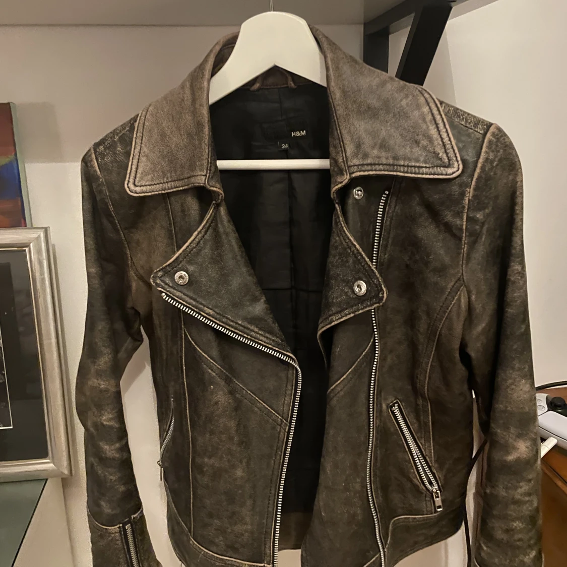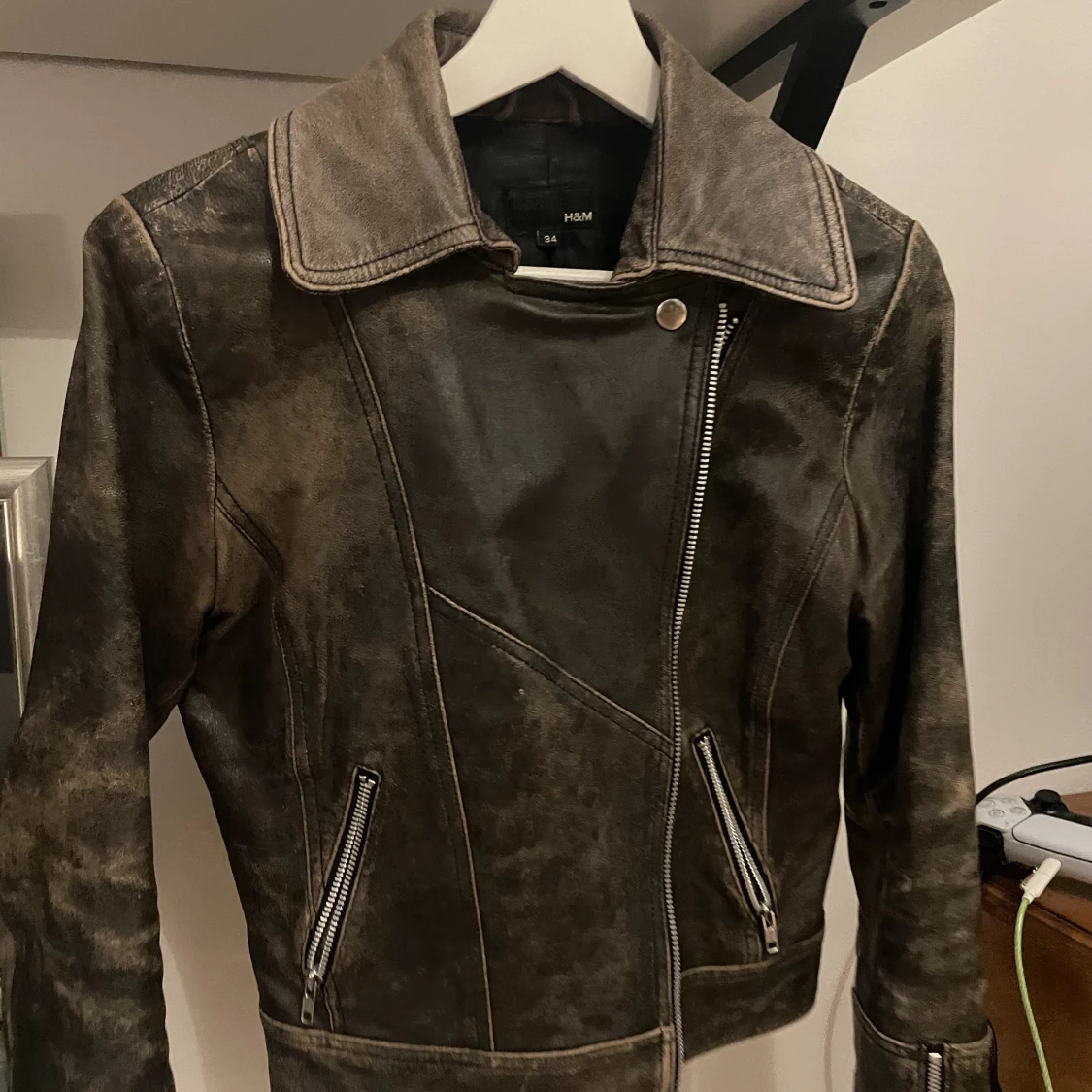 En sliten skinnjacka jag köpt på second hand. Jackan är riktigt snygg på💛