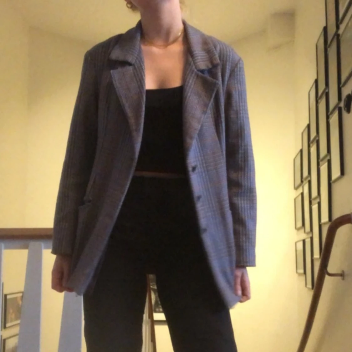 Superfin och trendig kavaj i grårutigt mönster! Köpt vintage men säljer för att den inte kommer till användning😊 inga fel eller slitningar