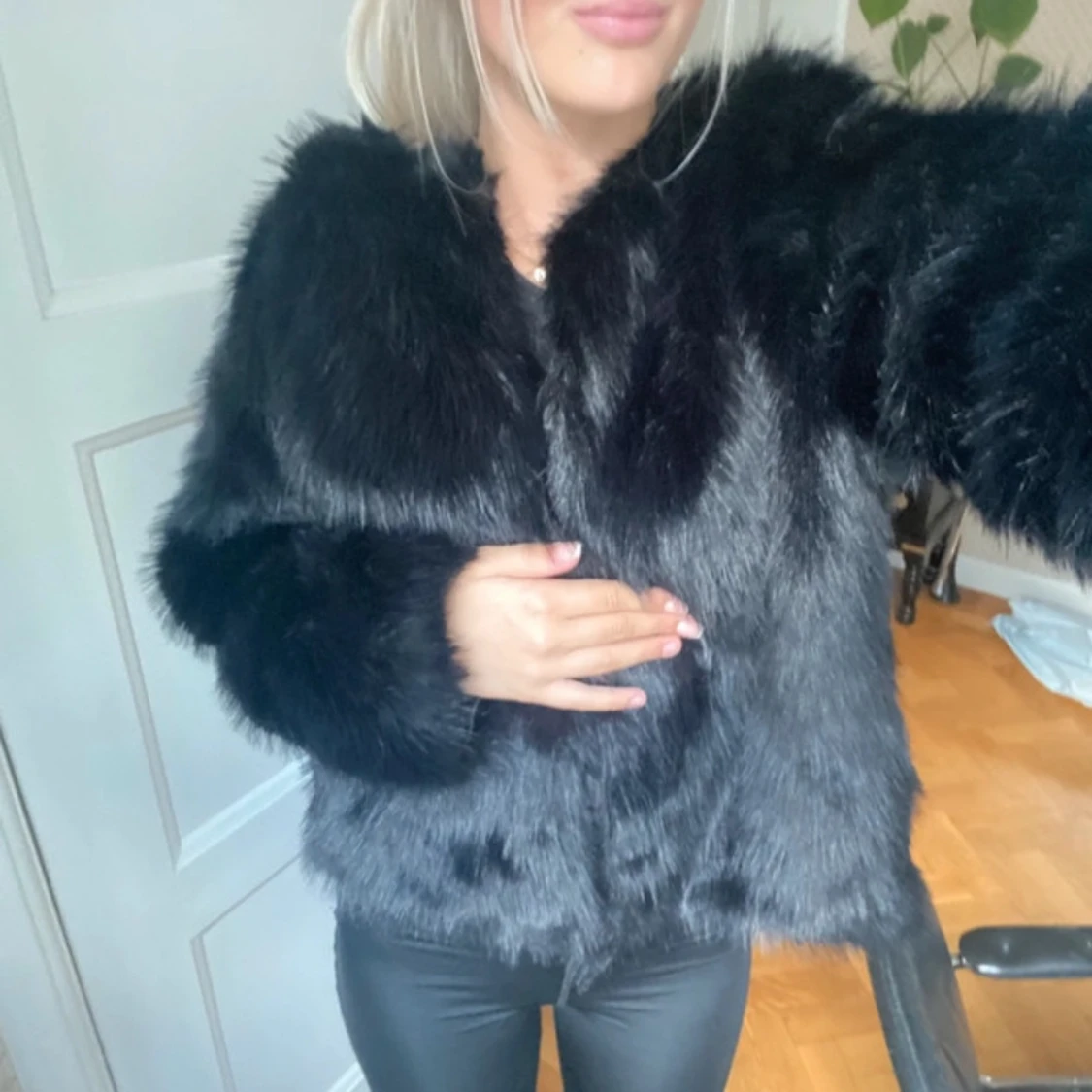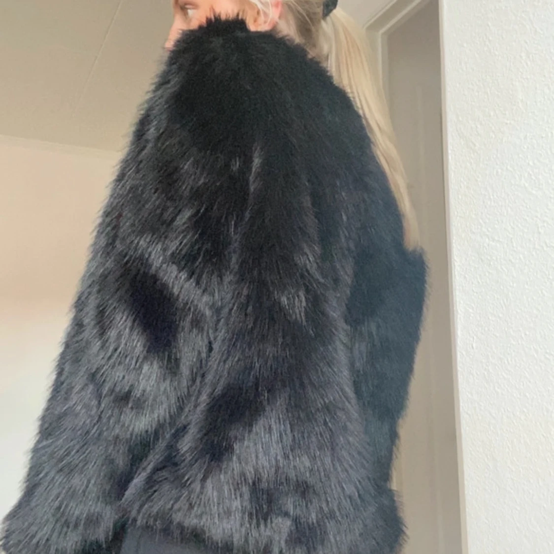 Super fin pälsjacka från H&M i storlek S. Mellan tjock med små spännen för att kunna stänga jackan. Passar perfekt nu till hösten och vissa vinterdagar. Aldrig använd och är i bra skick!