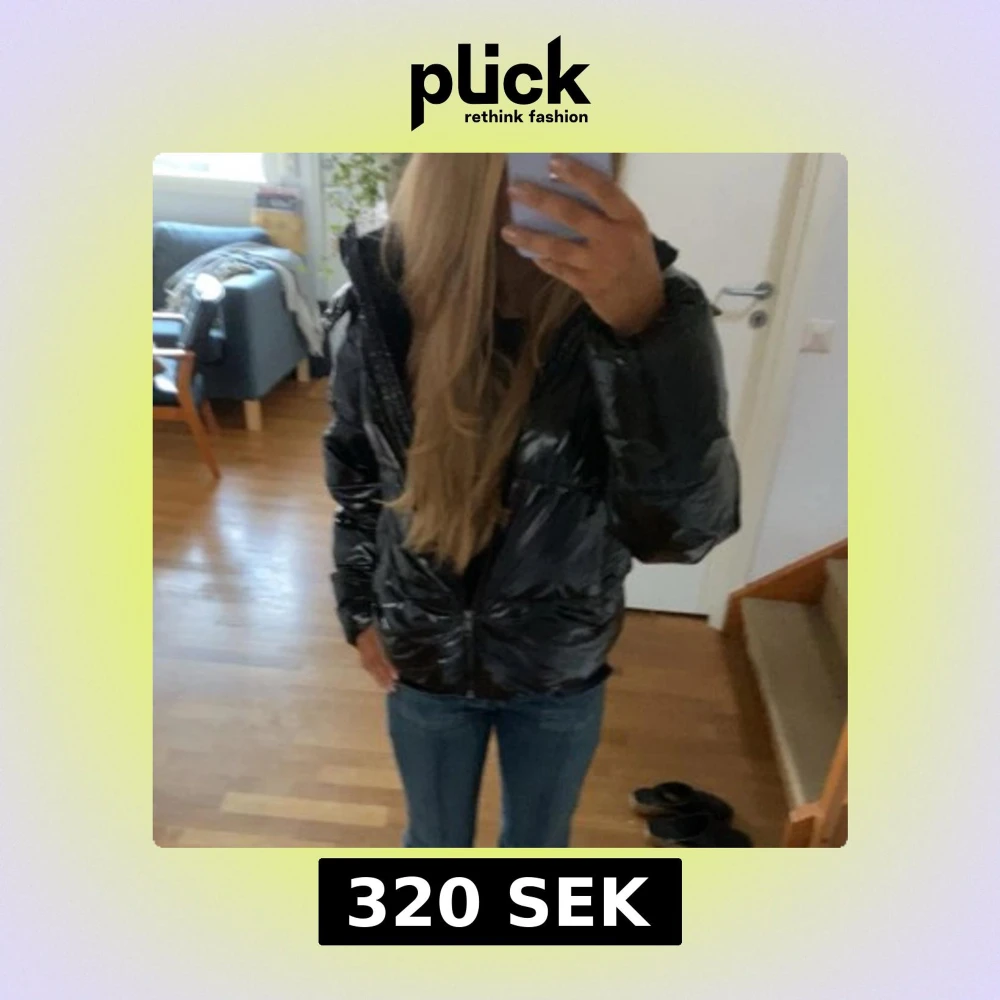En jätte mysig och varm vinter/höst jacka. Svart glansig, med luva och dragkedja. Ett litet hål vid sidan av dragkedjan. Säljer pga att det inte riktigt är min stil längre!